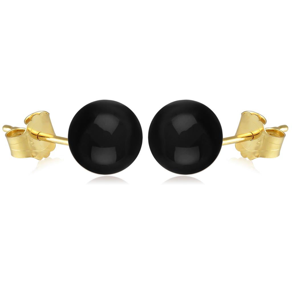 Les Trésors De Lily [M6510] - Позолоченные серьги «Минералия» с ониксом - 10 мм