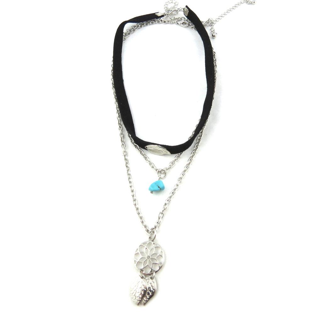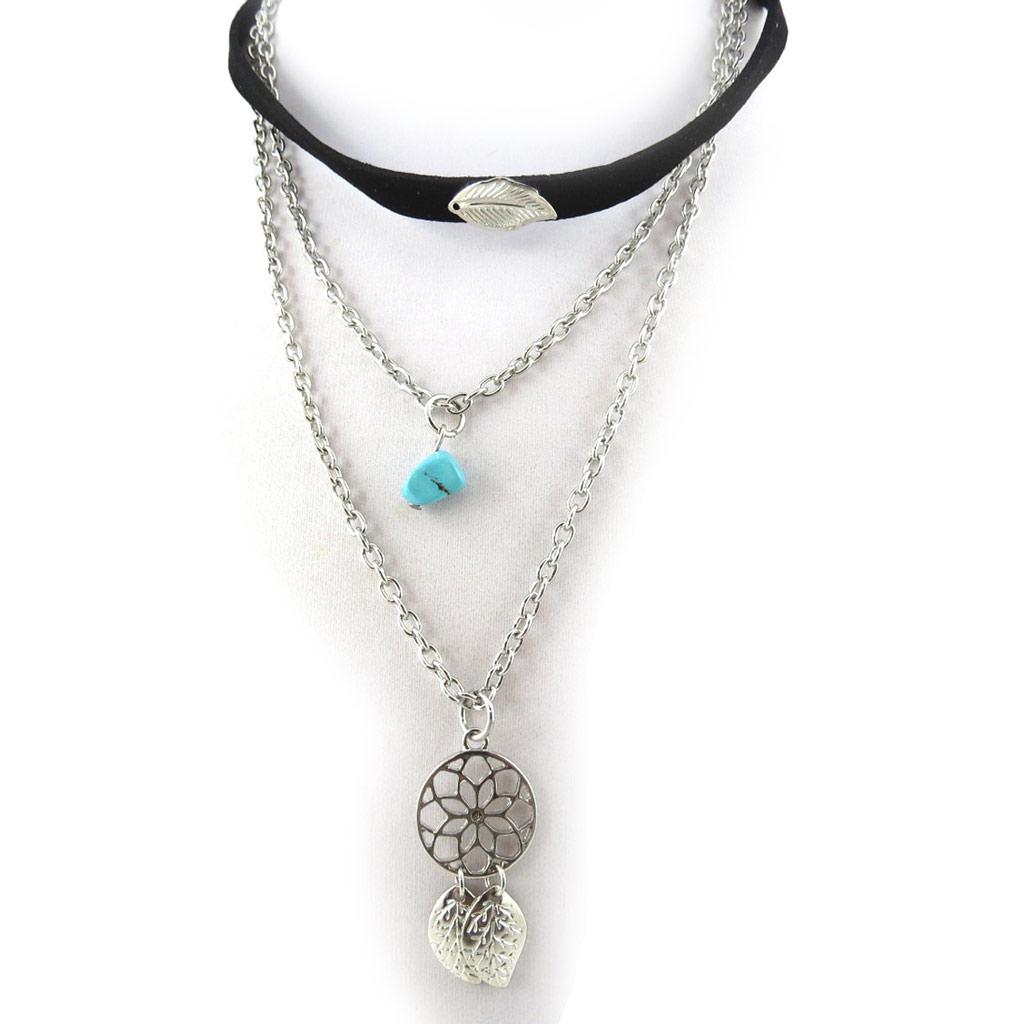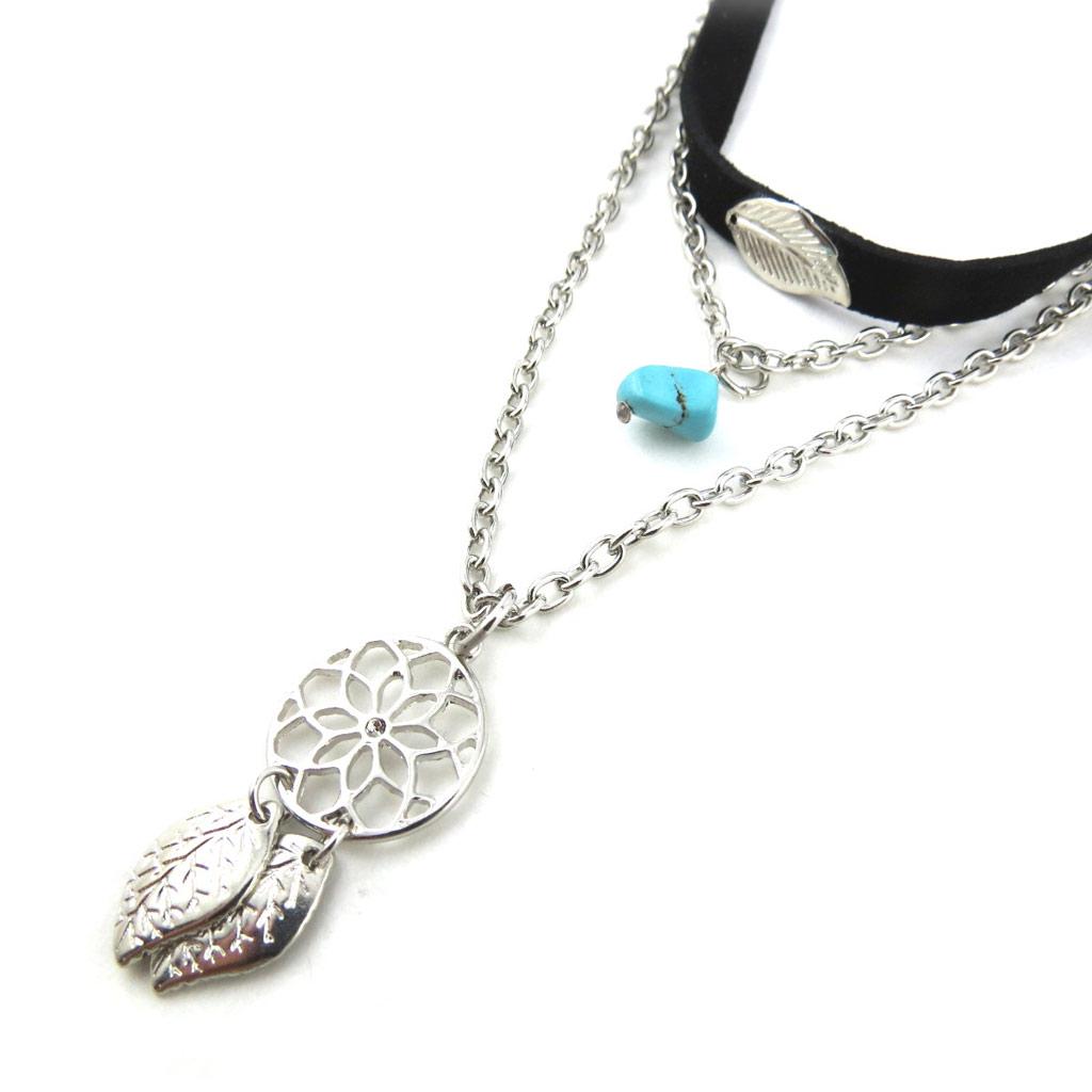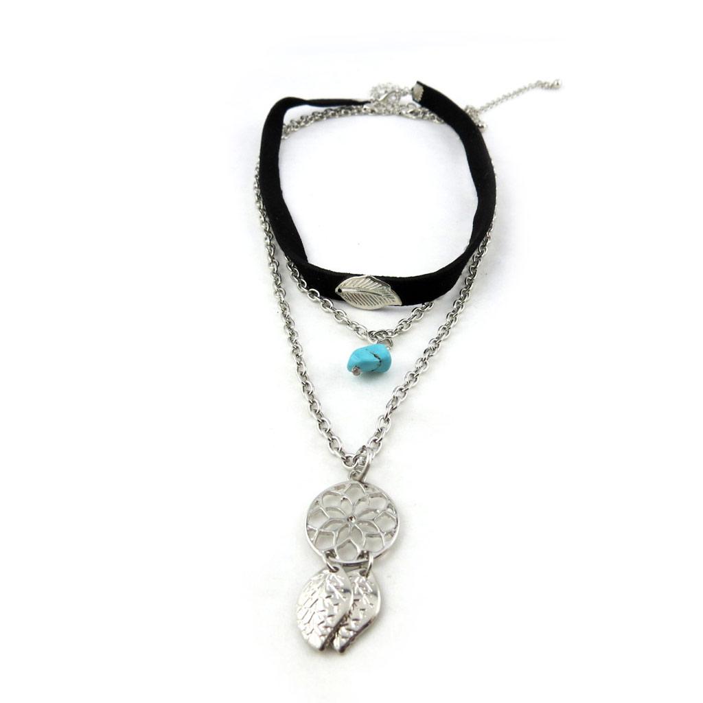 Les Trésors De Lily [N0976] - Длинное колье «Навахо» из серебра и бирюзы.