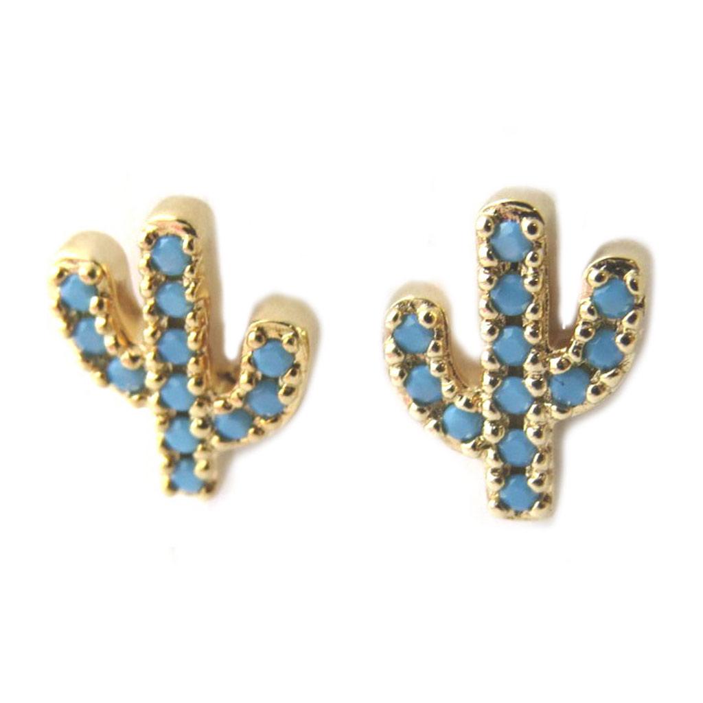 Les Trésors De Lily [N7129] - Позолоченные серьги «Кактус» с бирюзой и золотом.