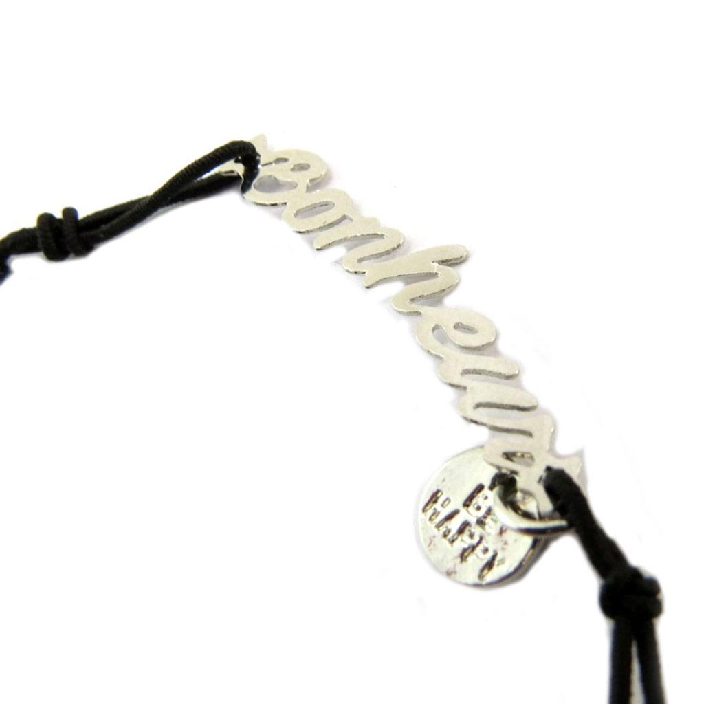 Les Trésors De Lily [P5370] - Браслет на резинке «Сообщения» черный, серебристый (счастье)