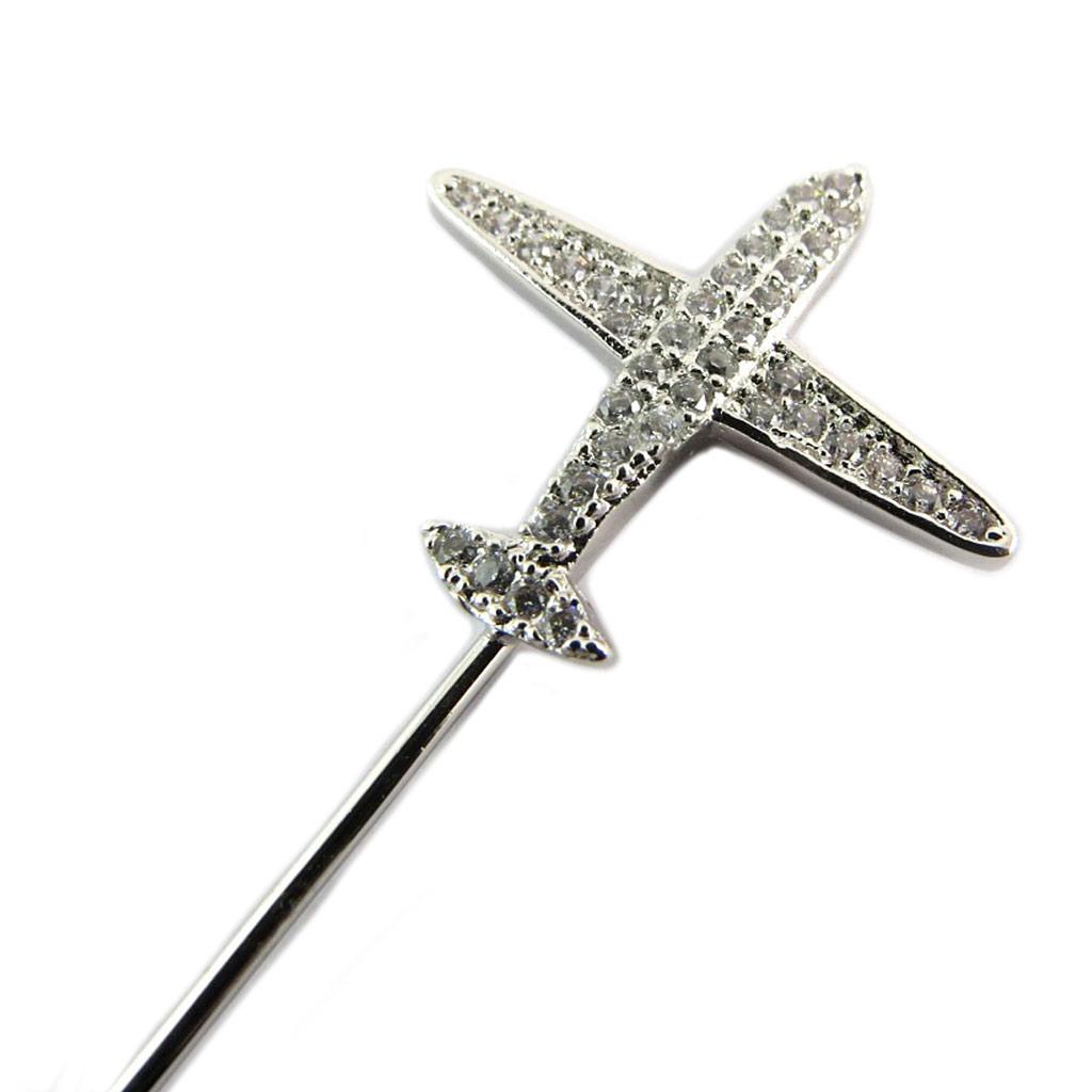 Les Trésors De Lily [P8117] - Дизайнерская брошь «Самолет» серебристо-белого цвета - 70 мм - 20x19 мм