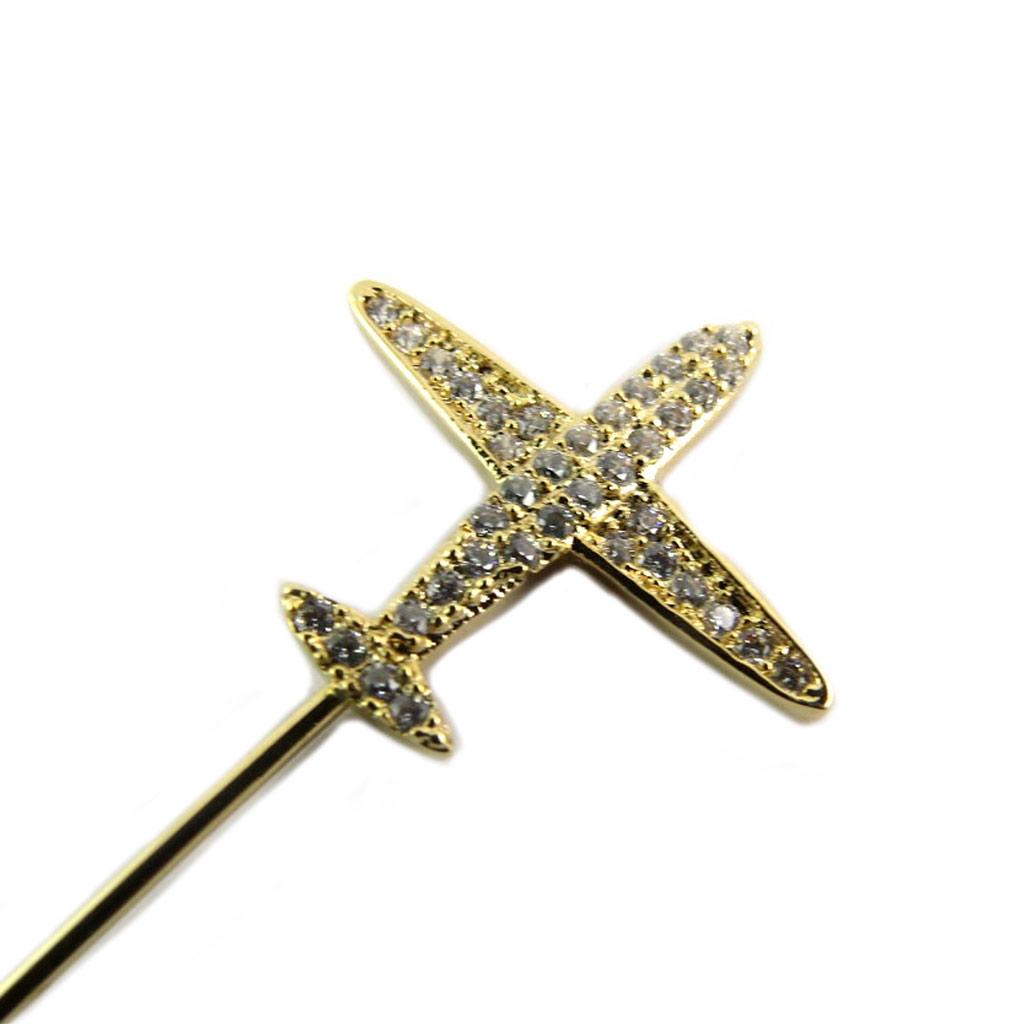 Les Trésors De Lily [P8118] - Авторская брошь «Самолет» золотисто-белого цвета - 70 мм - 20х19 мм