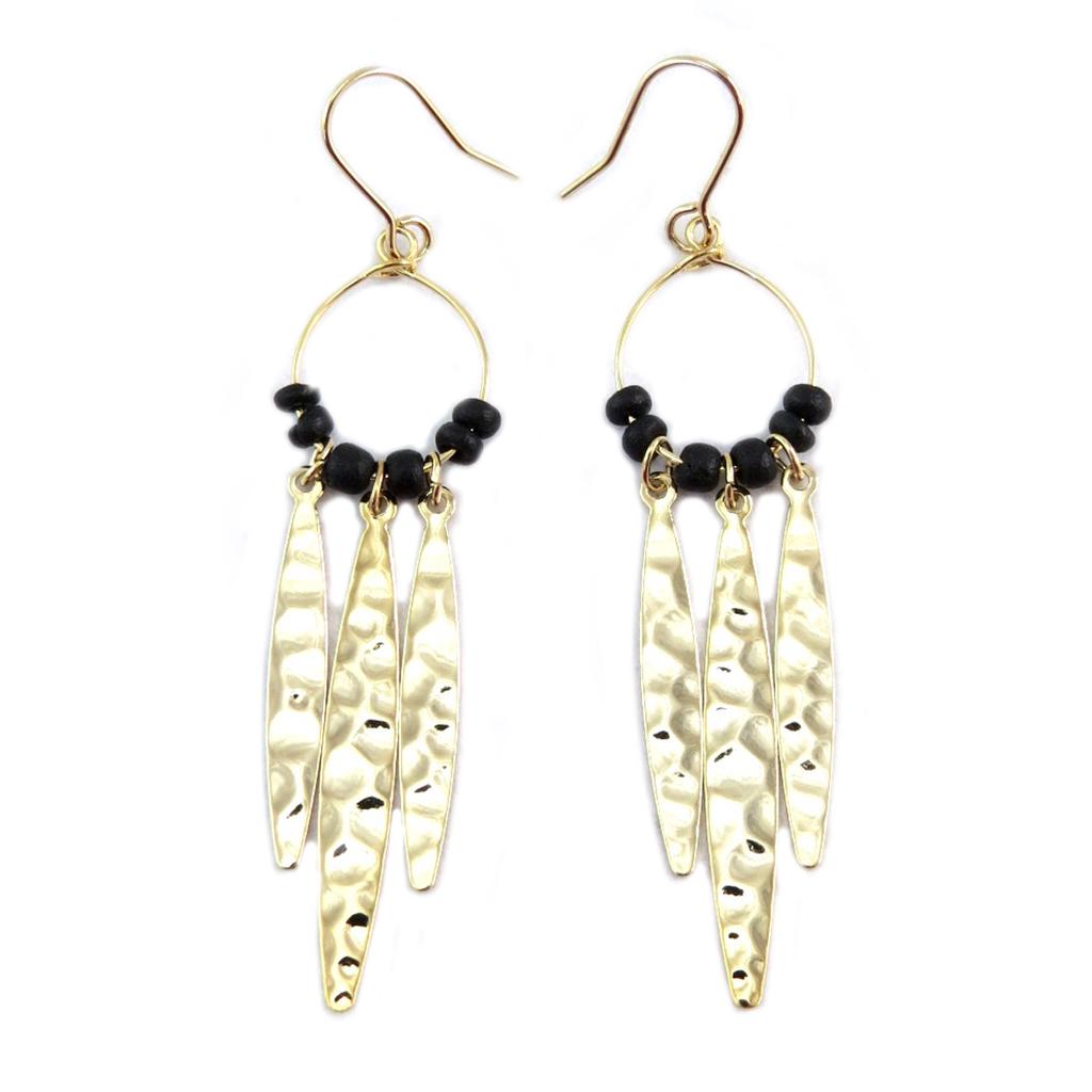 7bis [Q6241] - Серьги "Бохо" ручной работы из черного золота (дерево) - 55х15 мм