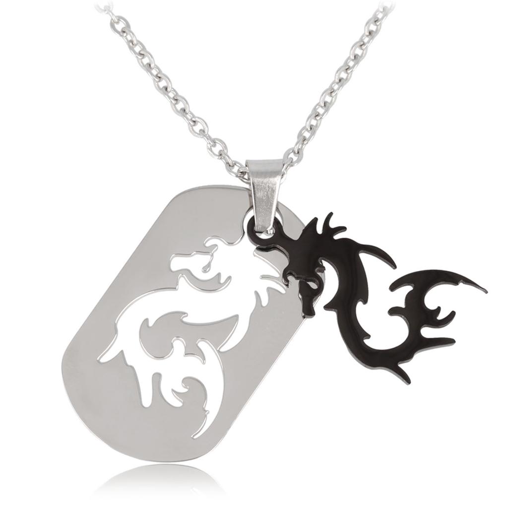 Les Trésors De Lily [Q7365] — Стальное колье «Дракон» черного/серебристого цвета — 32x19 мм