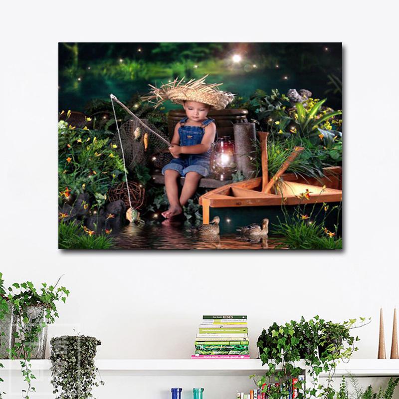 Алмазная картина, вышивка, рыбалка, мальчик, вышивка крестиком, хобби, ручная вышивка, картина, рыба-ангел