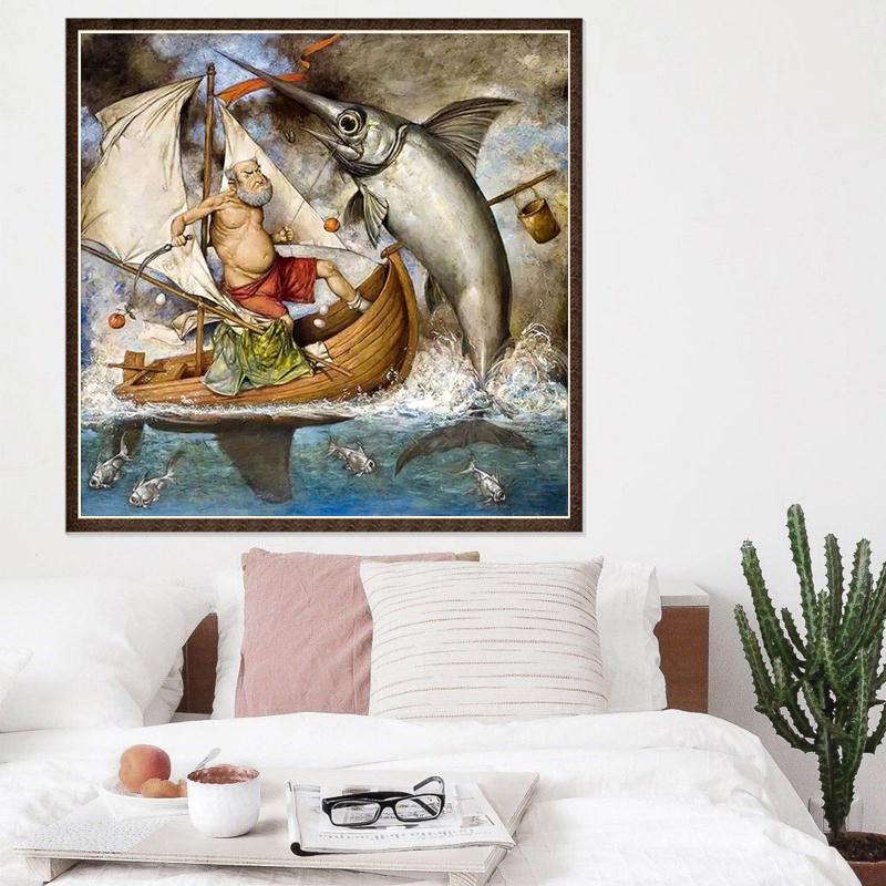 5d Diy Алмазная картина Пейзаж Рыбалка Рыба Полный круглый дрель Горный хрусталь Вышивка Крестом