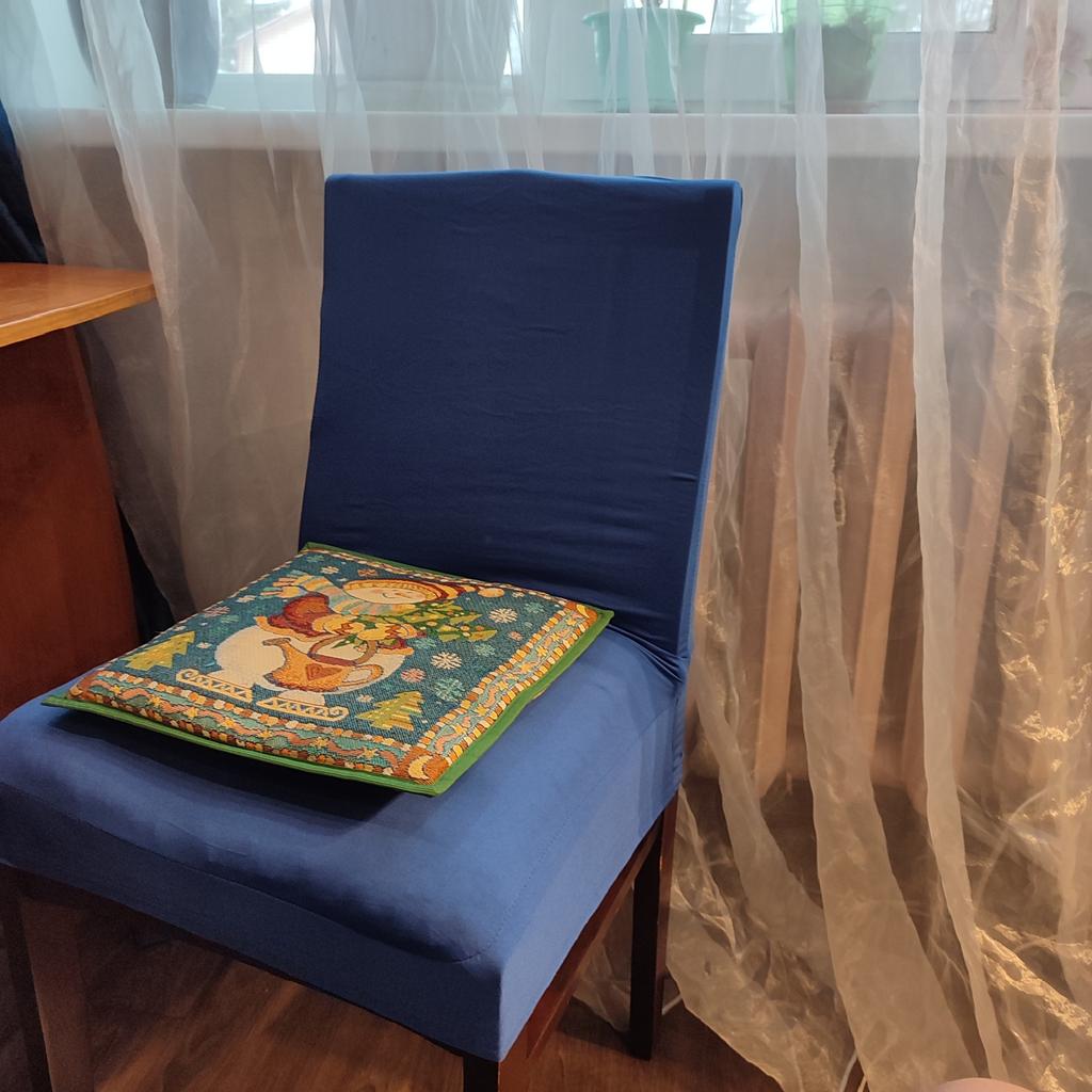 Чехол подошёл на стул, для которого я его заказала, но материал хуже, чем я предполагала. Он маловат и ткань чистая синтетика. В целом, мне нравится.