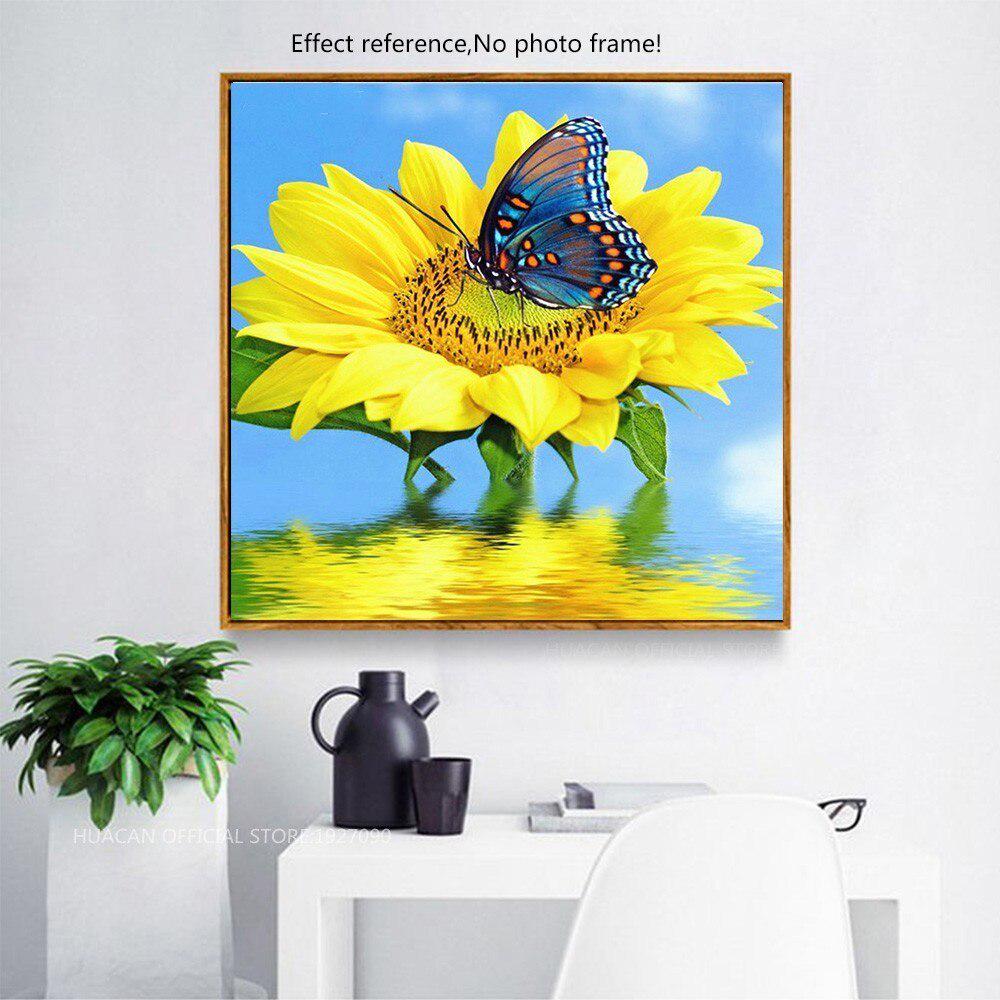 Алмазная картина Подсолнух Полная круглая дрель Алмазная мозаика Бабочка Алмазная вышивка — купить товар онлайн с бесплатной доставкой по всему миру!