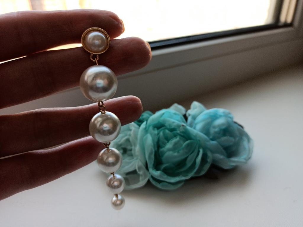 Здравствуйте, сегодня хочу поделиться своей недавней покупкой. Серьги-гвоздики из жемчужин разного размера. Смотрятся очень интересно. Длина серёжек -- 9,5 см, при этом они лёгкие, но неневесомые, конечно 😉. На мой взгляд они идеально подходят для фотосессий, т. к. обычные ювелирные украшения как правило не видно издалека. Серьги яркие, эффектные, привлекающие к себе внимание. По поводу аллергии ничего сказать не могу. У меня любая бижутерия (даже та, что значительно дороже), через пару часов вызывает сильную аллергию. Поэтому одевать буду только для фото. Покупкой довольна, если любите что-то подобное, то присмотритесь к ним. Всем удачных покупок!