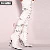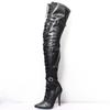 Сапоги на высоком каблуке 12 см с острым носком, пряжкой и ремешком на шнуровке, высокие сапоги выше колена, экзотические, фетишистские, сексуальные, туфли
