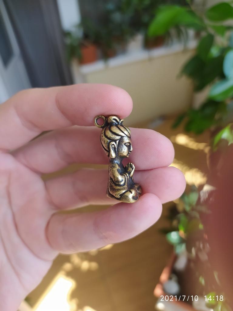 Очень красивый миниатюрный Будда)) Тяжёлый, хорошая проработка деталей, возможно сделать кулон- сзади есть петелька. Идеально подошёл в наш садик 👍🏼