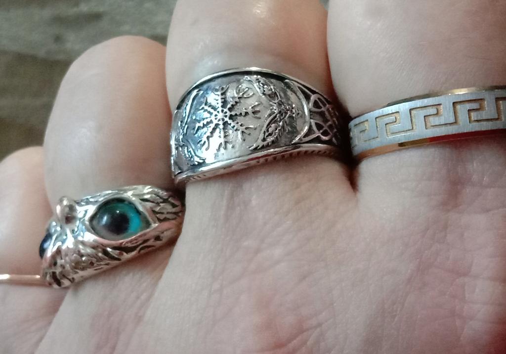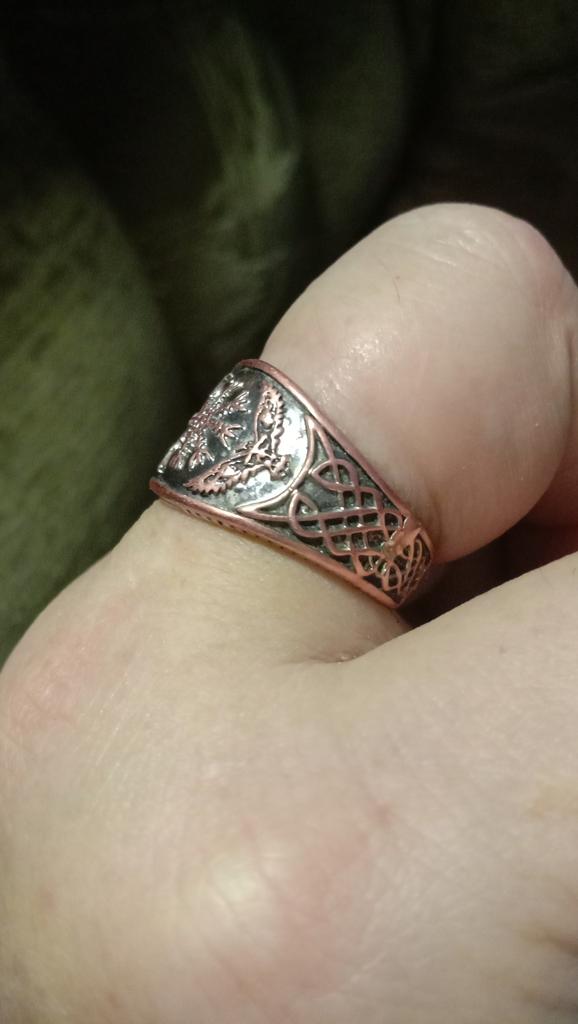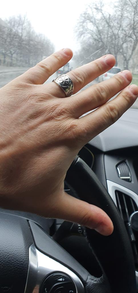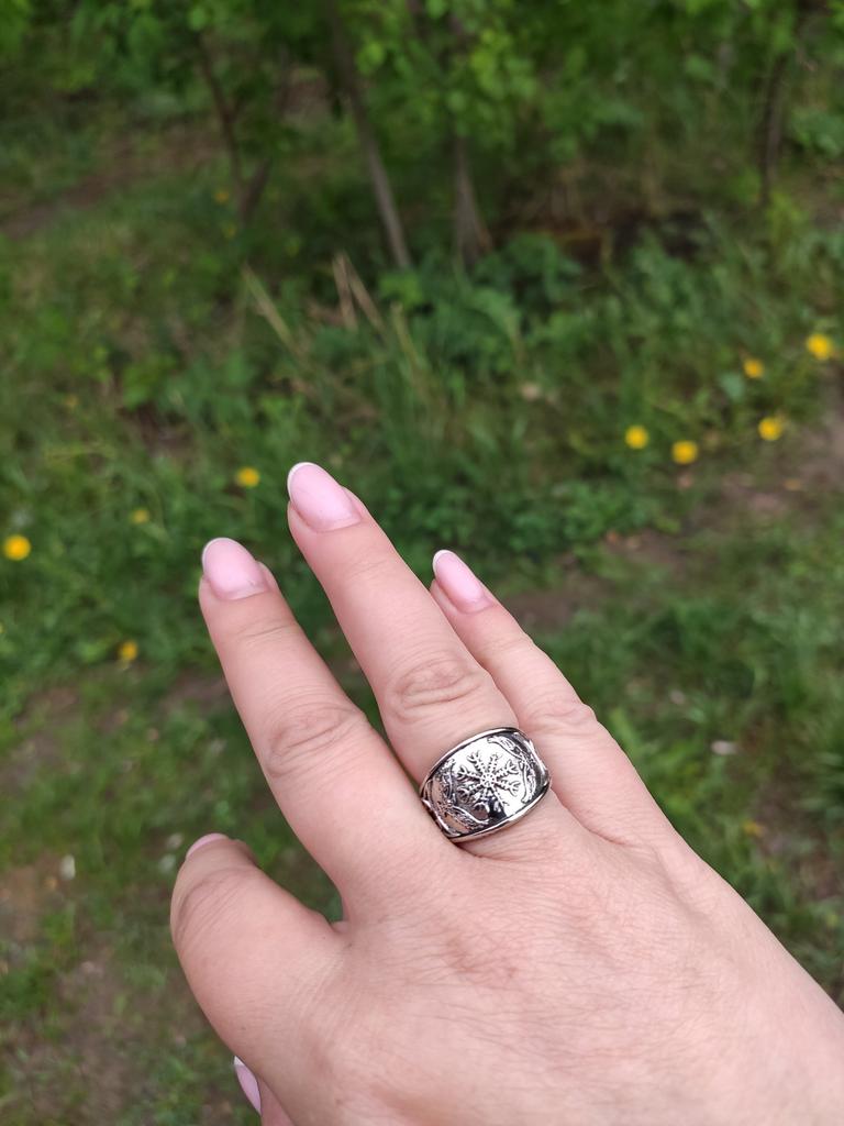 Колечко аутельно смотрится необычно, маломерят чучуть , и ещё тоток го пока одел , надеюсь не будет желтеть закажу больше
