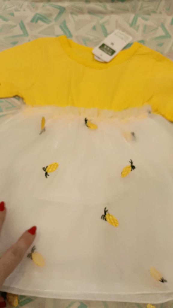 Я в восторге от этого платьица Взяла внучке на 1,5 года, чуть большевато будет, но она у нас дюймовочка. Платьице просто чудо, яркое, нарядное, пышное. Для королевы ананасов! Доставка в Казахстан ровно месяц