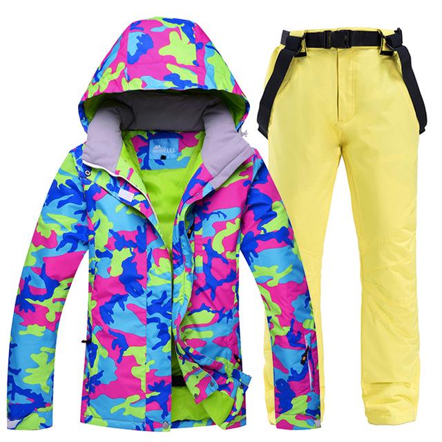 Зимний лыжный костюм, женские бренды, высококачественная лыжная куртка и брюки для женщин, теплая, водонепроницаемая, ветрозащитная