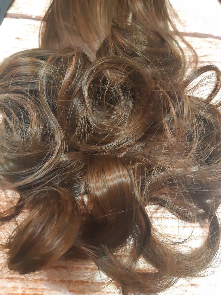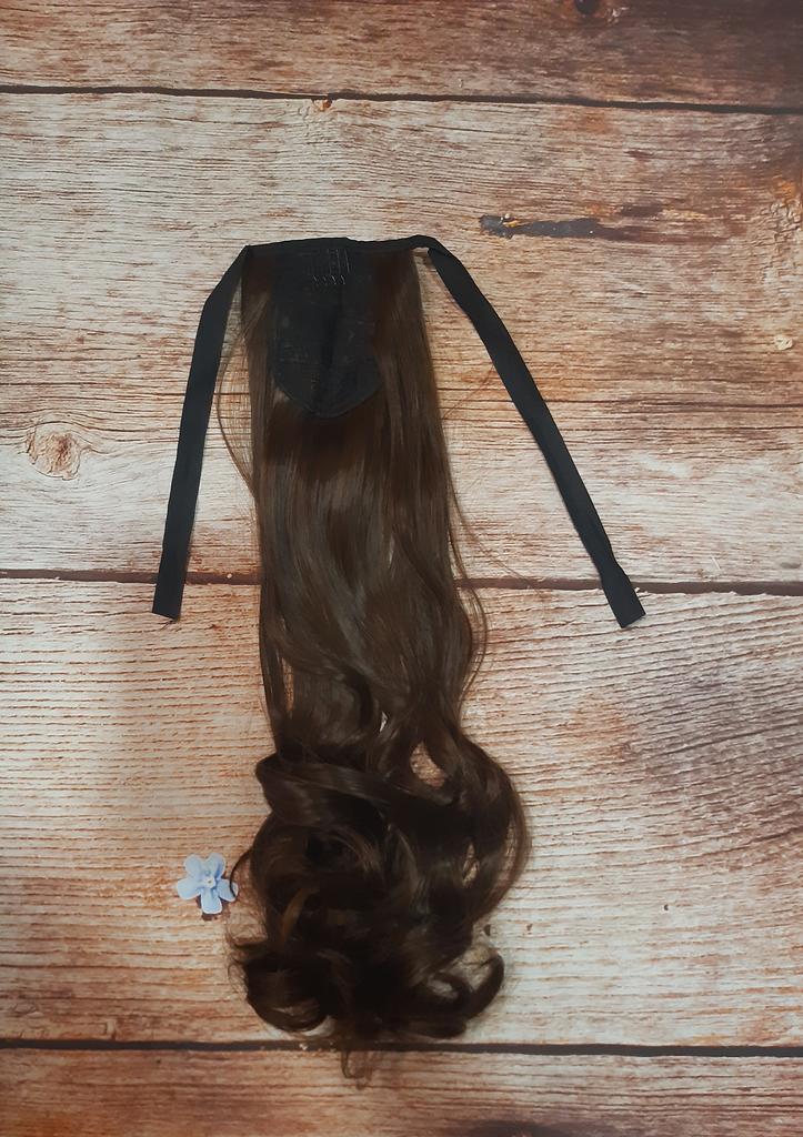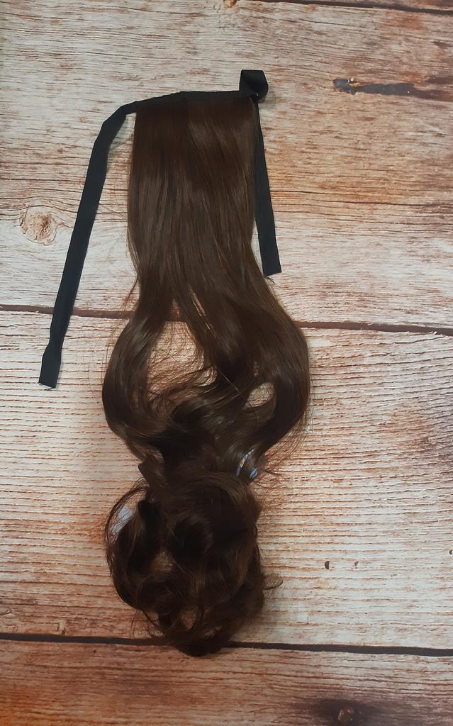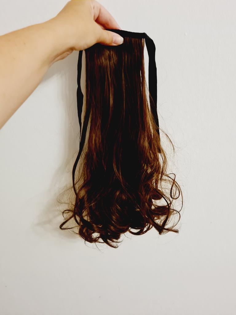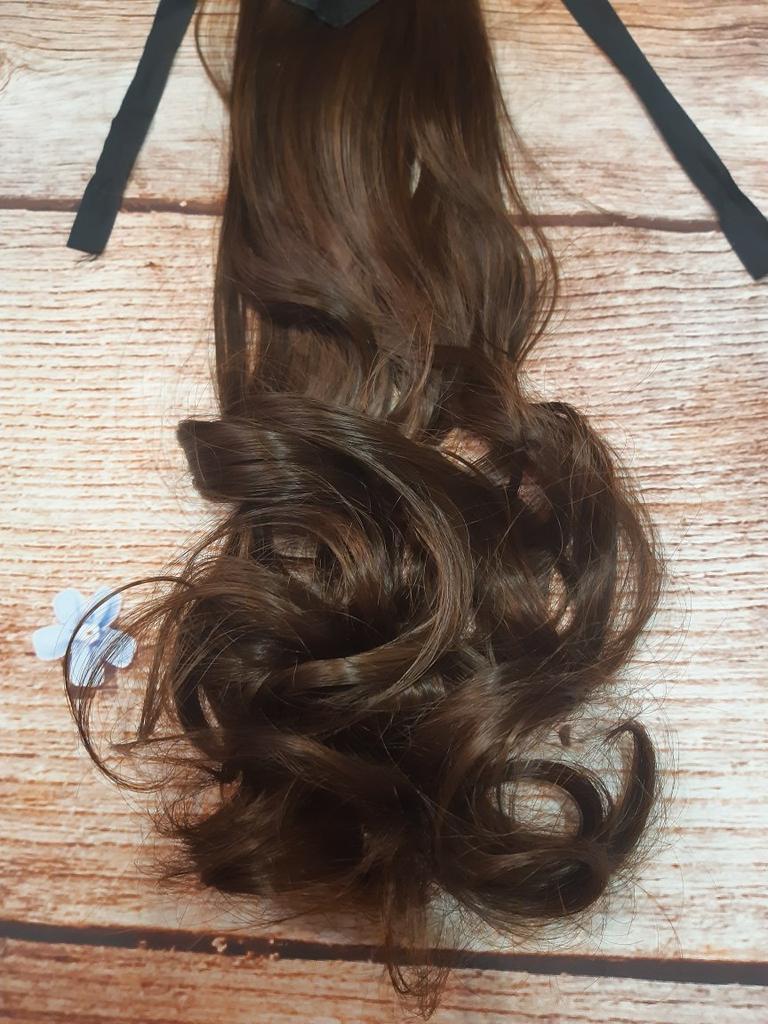 Очень симпатичный хвост с вьющимися волосами . Цает светло-коричневый, номер curly 48 см 🧝♀️🧝♀️🧝♀️🧝♀️🧝♀️ Хвост средней длины , локоны красивые и блестящие, выглядят довольно натурально. ❤❤❤ Крепиться хвост при помощи специальной застежки гребешка и плюс дополнительные ленточки есть , для более надёжной фиксации. Цвет скорее темно русый . Конечно с моим рыжим разница в цвете ощутима , но мне нравится 👍 👍 👍