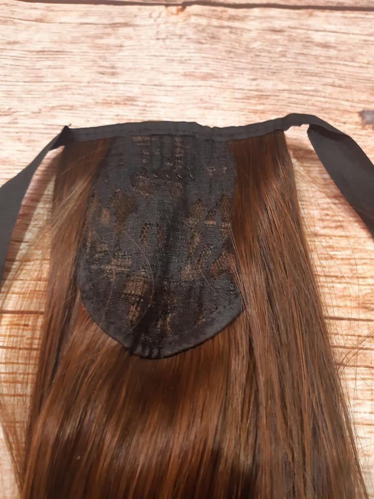 Шикарный хвост, цвет прям в точку как мой, блеска искусственных волос нет СОВСЕМ!!! Прошито крепко, крепления на месте. Это просто круто!!! Спасибо огромное, рекомендую продавца и товар)))