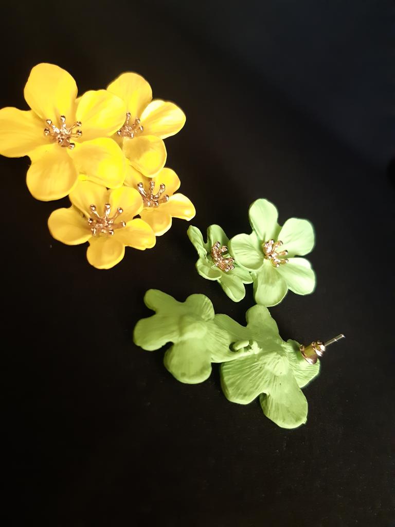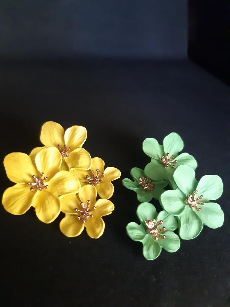 Эти серьги по качеству и эстетике выигрывают даже у брендовой бижутерии. Не знаю, почему они не стали летним трендом Joom, возможно только по досадному недосмотру. ✔Начнем с того, что это металл, а не пластик. А значит серьги уверенно-тяжелые и прекрасно держат форму. Обработаны отлично, нигде нет искривлений или металлических заусенец. ✔Окрашены по верх металла, хорошо, качественно, однородно и плотно. Все сочленения тоже металлические, паянные. Нижний цветок не отделяется от верхнего даже если ими резко взмахнуть. ✔В комплекте два вида "застежек". Тычинки тоже металлические,с золотистым напылением, общий вид это не дешевит. Мочку серьги не оттягивают, чувствуются, но не настолько уж тяжелые, чтоб было больно. Пришли в разных пакетах месяца за полтора. Упакованы были откровенно не очень, из-за чего деформировались "штырьки" застежек. При должном умении - поправить можно, но к продавцу есть вопросы. В целом рекомендую, на ухе смотрятся красиво.