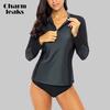 Charmleaks Женская рубашка-рашгард с длинным рукавом на молнии спереди Купальник в стиле пэчворк Рубашка для купания Рашгард UPF50+