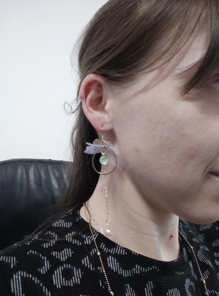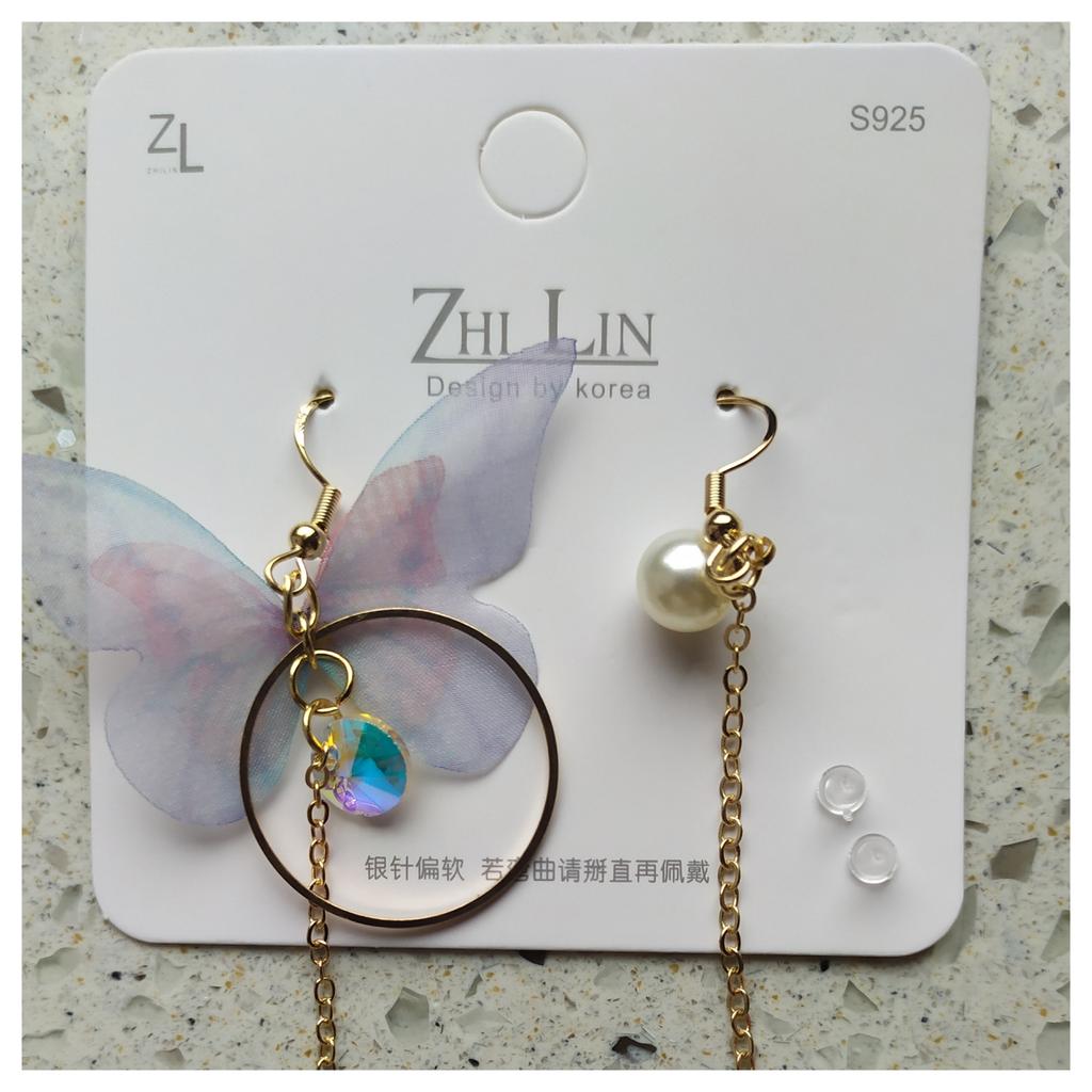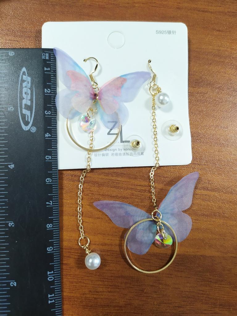 Серьги с ассимитричными бабочками 🦋 Серьги очень красивые и нежные, на ушах не весомы. Их можно одеть и в пир и в мир. 💎 Камень переливается разными цветами в зависимости от освещения. 🦪 Жемчуг искусственный, прикреплен надёжно 🦋 Бабочка сделана из органзы, края не осыпаются, состоит из двух элементов. Большая бабочка- сиренево- голубого цвета, маленькая бабочка - розового цвета. Длина 10,5см 🦋 На швензе есть проба 925, на картинке написано S925, возможно это напыление, но утверждать не буду, так как не могу проверить. 🦋 К серьгам было вложено 3 заглушки, на фото 2, третий заметила позже. 🦋 Упакованы были в прозрачный пакет и вложен пупырчатый пакет. Доставлено без повреждений.(немного загнулась маленькая бабочка, но это не критично) ВЫВОД: Рекомендую к покупке👍🏻