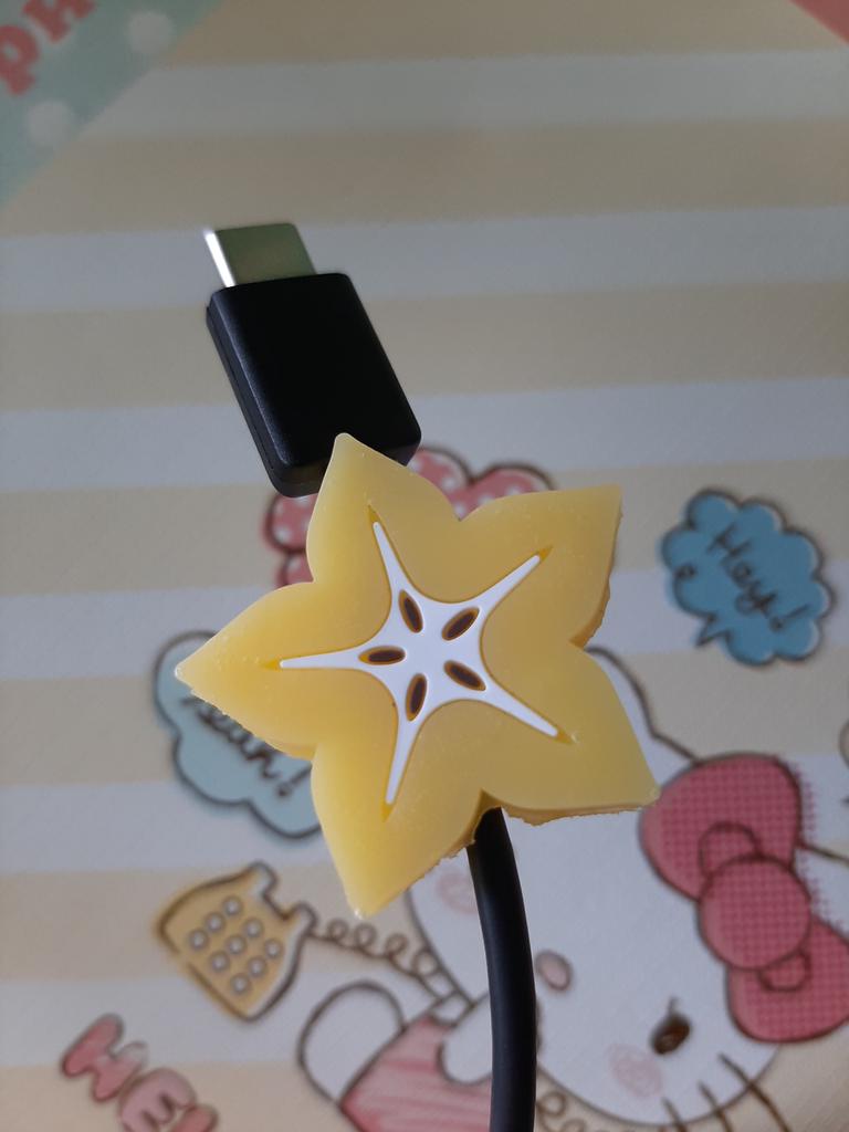 Просто не знаю как я до этого жила без своей карамбольки🥰🥰... у меня есть провод старый и затрепаный,но он оригинальный и поэтому я его не выбрасываю,да и заряжает он отлично, правда приходиться его постоянно перематывать изолентой🤨НО, это было ровно до того дня как ко мне пришла обложечка для кабеля📦теперь я спокойна за кабель моей зарядки, карамболька яркая,с твердого пластика и поднимает настроение каждый раз как я на нее смотрю.