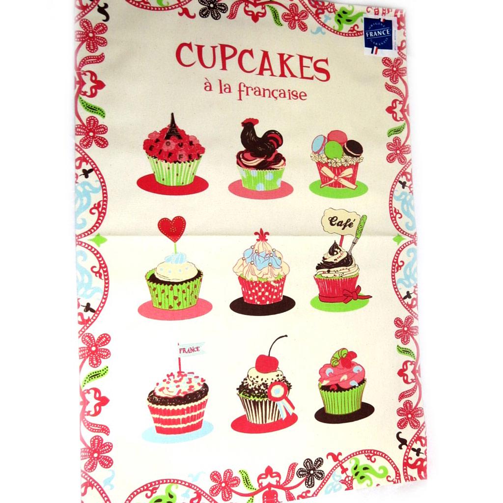 Les Trésors De Lily [L1240] — Дизайнерское кухонное полотенце «Cupcakes à la Française» бежевого, розового, зеленого цвета.