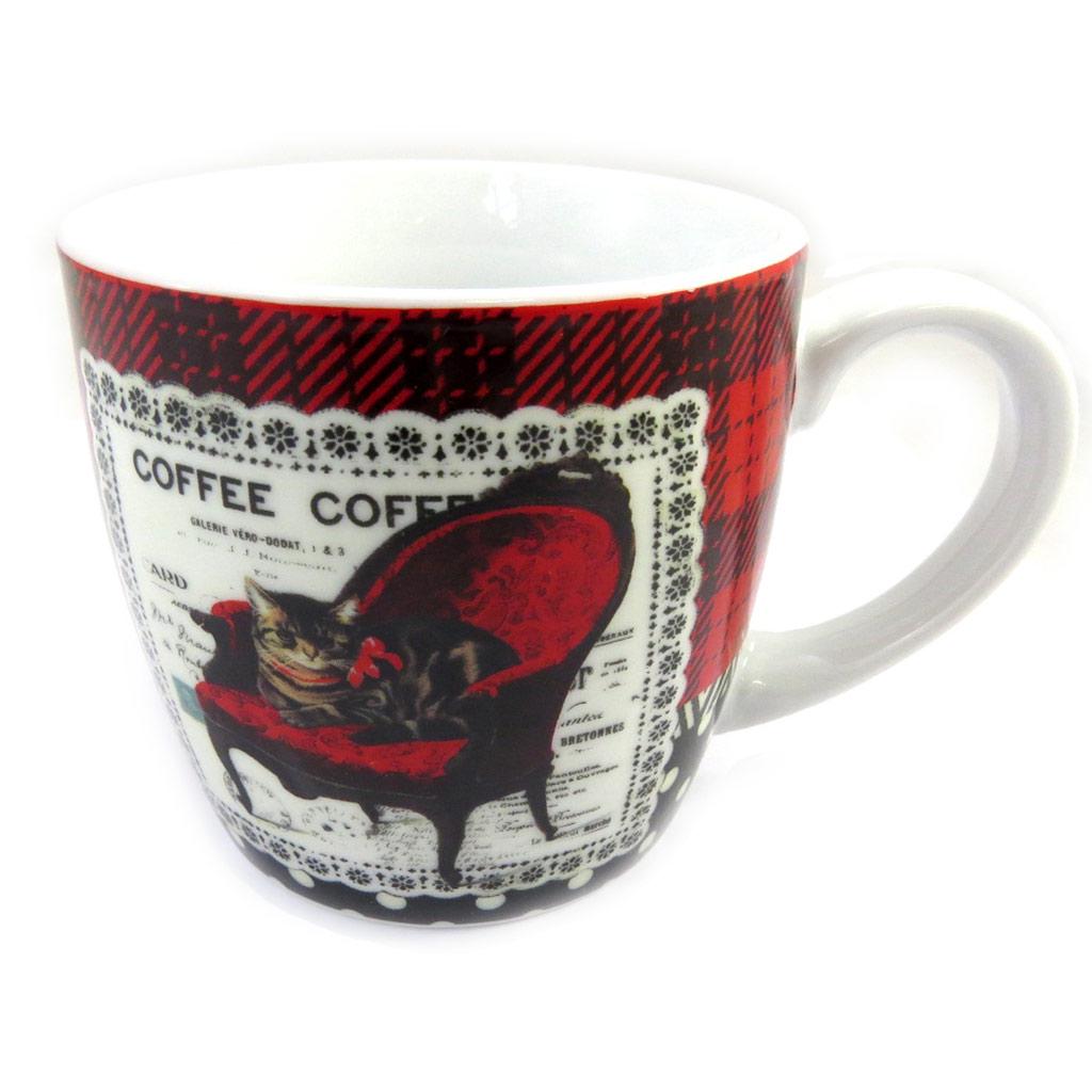 Les Trésors De Lily [M1398] - Фарфоровая кружка 'Belle Epoque' красно-белая (кошка) - 9x9 см — купить товар онлайн с бесплатной доставкой по всему миру!