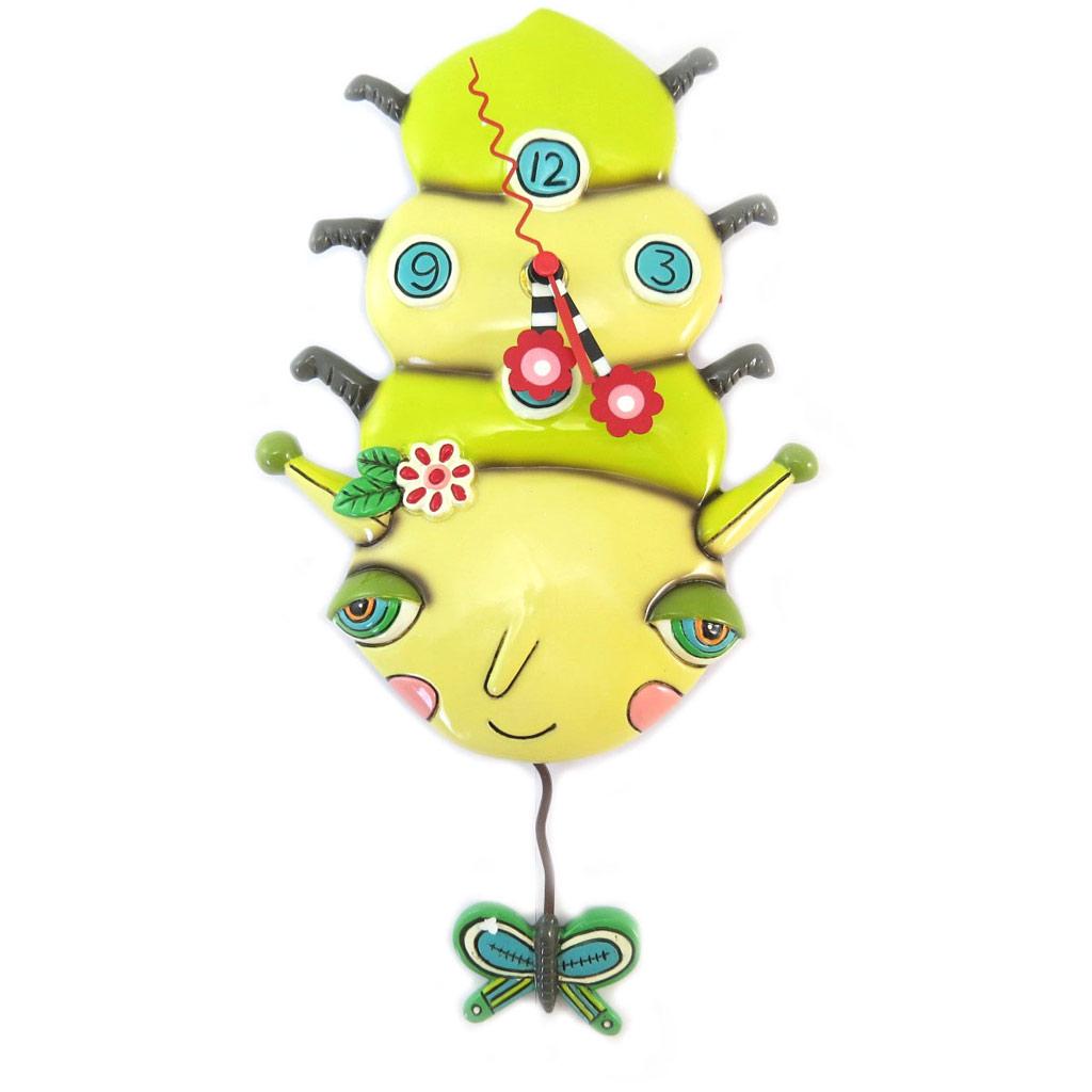 Allen Designs [P5704] — Настенные часы «Allen Designs» с зеленой бабочкой и гусеницей — 30,5x16. 5 см