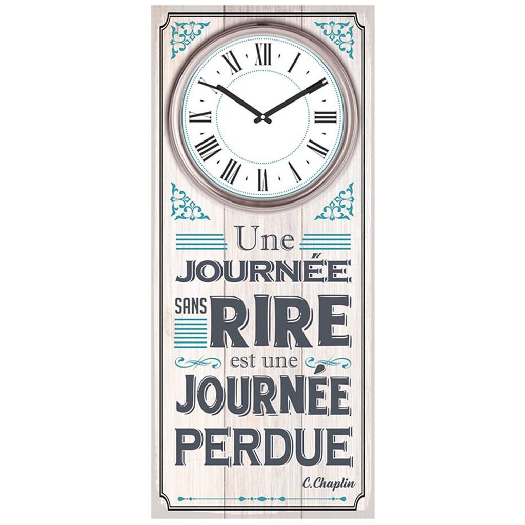 Les Trésors De Lily [Q7190] - Часы настенные деревянные «Цитаты» серо-синие (День без смеха — день потрачен впустую — К. Чаплин) — 70х30 см