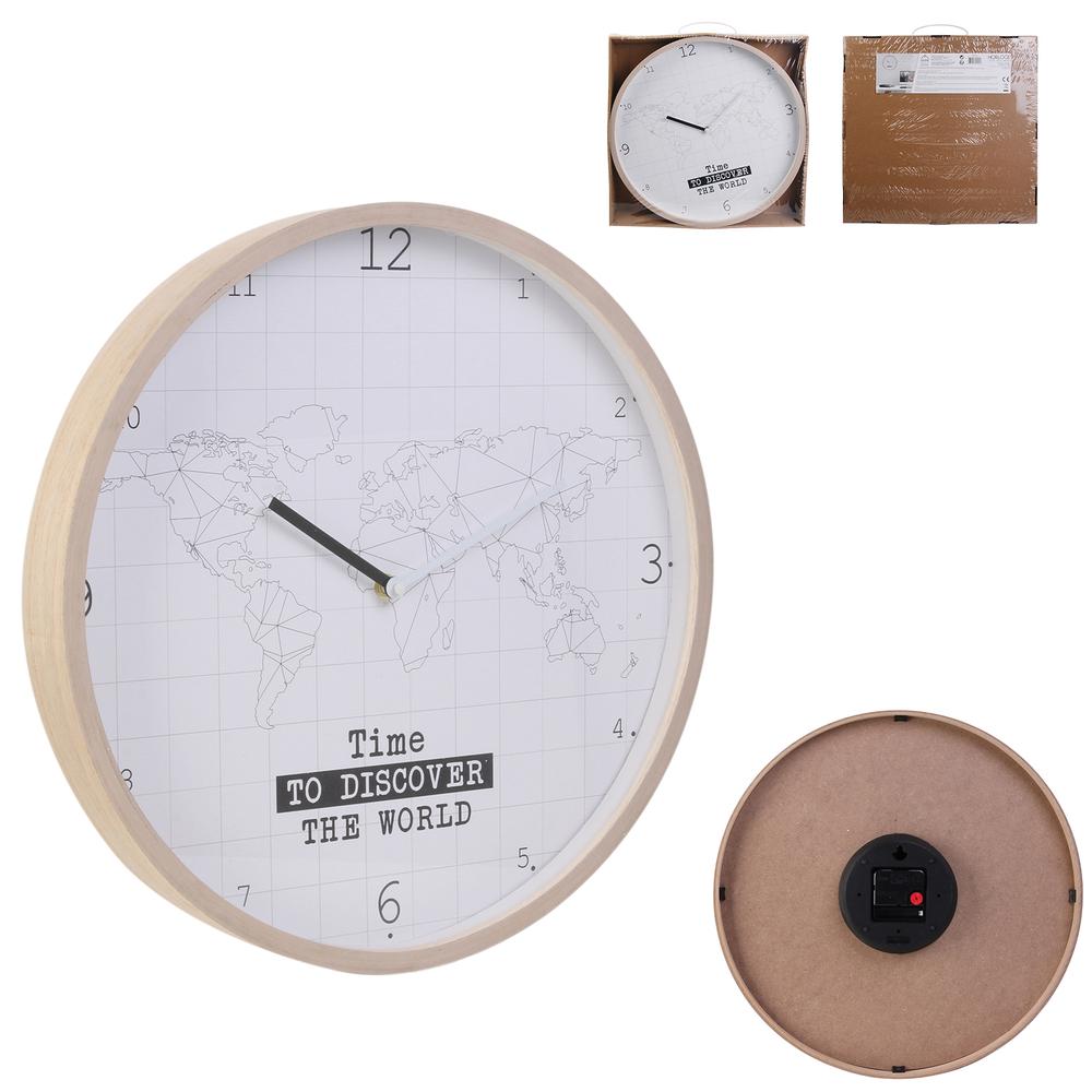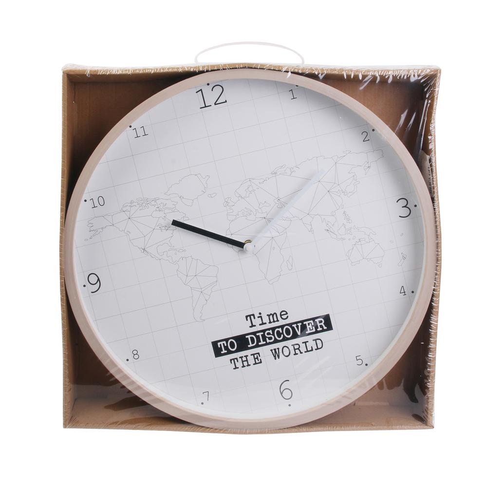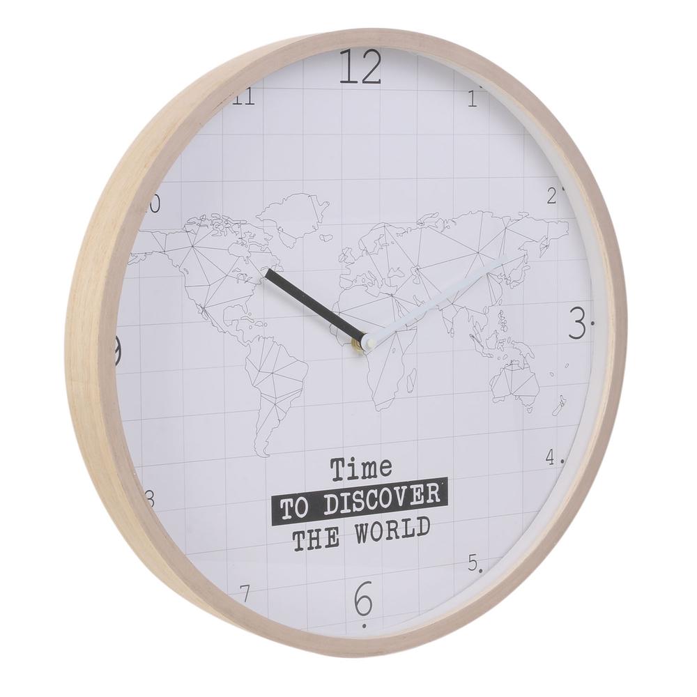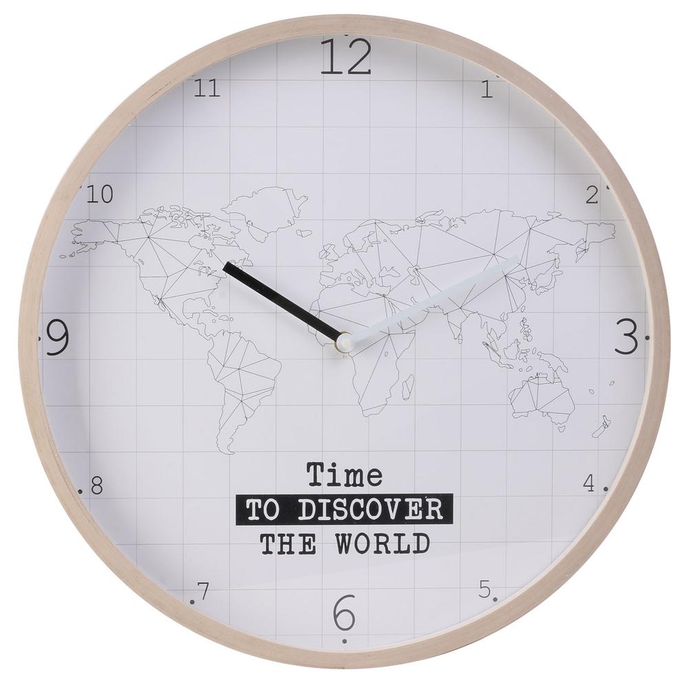 Les Trésors De Lily [R0011] - Часы деревянные настенные 'Mappemonde' бело-бежевые - 40x5 см