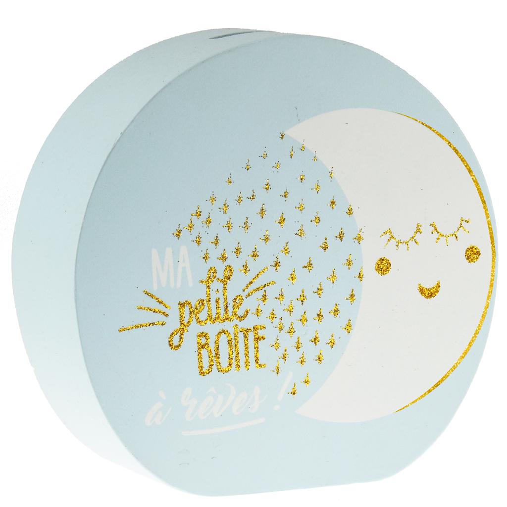 Les Trésors De Lily [R0493] — Синяя деревянная копилка «Сообщения» (моя коробочка мечты!) — 15х14. 5х5 см (луна)