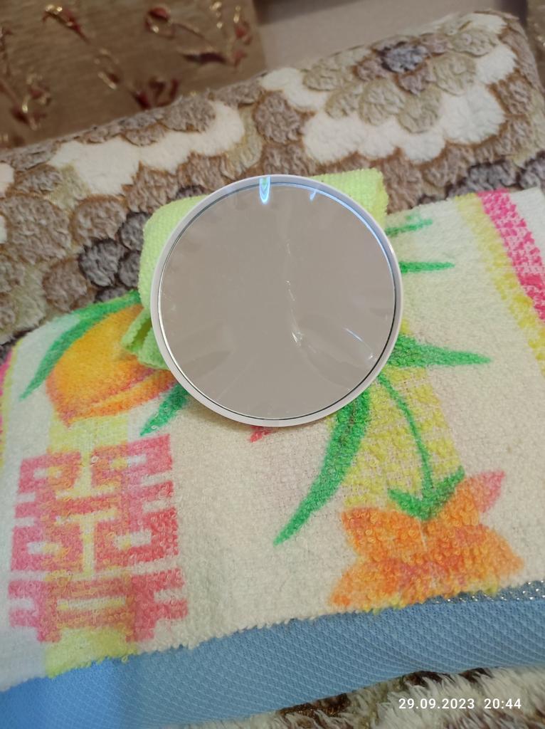Если честно, прочитав отзывы, думала что зеркальце совсем маленькое, ан нет, чуть больше ладошки, увеличивает замечательно, отдельно есть присоски, если надо куда-то прикрепить. Я довольна покупкой. Спасибо продавцу и Джум.