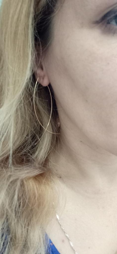 Весьма необычные и оригинальные серьги. Лёгкие, практически невесомые,немного неудобно одевать,приходиться их раскрывать широко,а металл очень тонкий,боязно сломать. Подойдут больше на летний период,т.к.в верхней одежде соприкасаются с курткой и.т.д. в итоге выскакивают и переворачиваются. В целом всё хорошо,а это всё небольшие недочёты,на которые можно не обращать внимания.