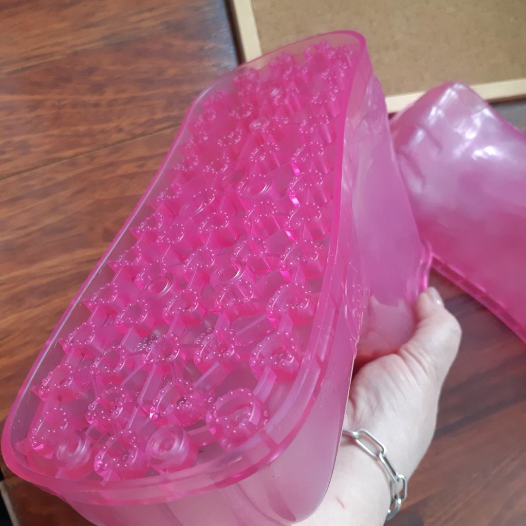 Это называется -сбылась мечта...... Как же я давно хотела их купить.Год точно. Надоели тазики. Увидела вот такие тапочки и поняла что они и есть замена тазику. Это тапочки-массажёр. Наливаете водичку(главное не перелить) Добавляете масло для ног и получаете релакс. Тем более что внутри ещё и массаж . Подойдёт до 41 размера точно!!! У меня 36-37. Даже внучка стояла у меня над душой и ждала когда же я дам ей посидеть также. У продавца в наличии 2 цвета-розовый и синий. После релакса тапочки сполоснуть водой и повесить на крючок для высыхания. Доставка меньше месяца. Продавцу 🤙🤙🤙