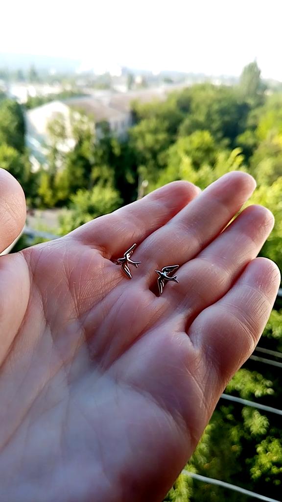 Серьги-гвоздики в виде ласточек 🕊️ Очень нежные и аккуратные ✨ Серьги из стерлингового серебра, смотрятся изящно и мило 💍 Лёгкие, удобные, уши не устают, гипоаллергенные — ношу с комфортом 🤍 Форма ласточек добавляет образу лёгкости и настроения 🌸 Красивые, аккуратные и комфортные серьги на каждый день ✨🕊️