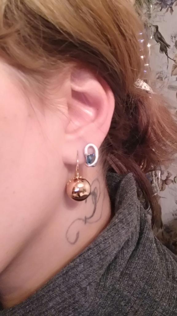 Только сегодня получила серёжки. Кинули в почтовый ящик в малюсенькой конверте. Зделала заказ 24.07, пришло 14.08...хотя отслеживались и во Франкфурте было уже 02.08. Хоть и конвертик был с "пупырками", сережки в мешочке, но дужка (а они длиннее чем на заявлено продавцом) от одной серьги была согнута немного на бок, и напыление "золота" отошло, а под ним темный метал..На фотографиях пыталась показать кривизну дужки и отслоившееся "золото" . А ведь они не самые дешёвые. Думаю, одев серьги напыление будет дальше отваливаться😟Очень расстроилась, так как очень ждала и они мне понравились. Выглядят дорого-богато под русское золото, не отличить! Подбирала к цепочке и колечку..Обратилась в службу поддержки. Деньги вернули полностью!! Спасибо службе поддержки и Джуму!!!