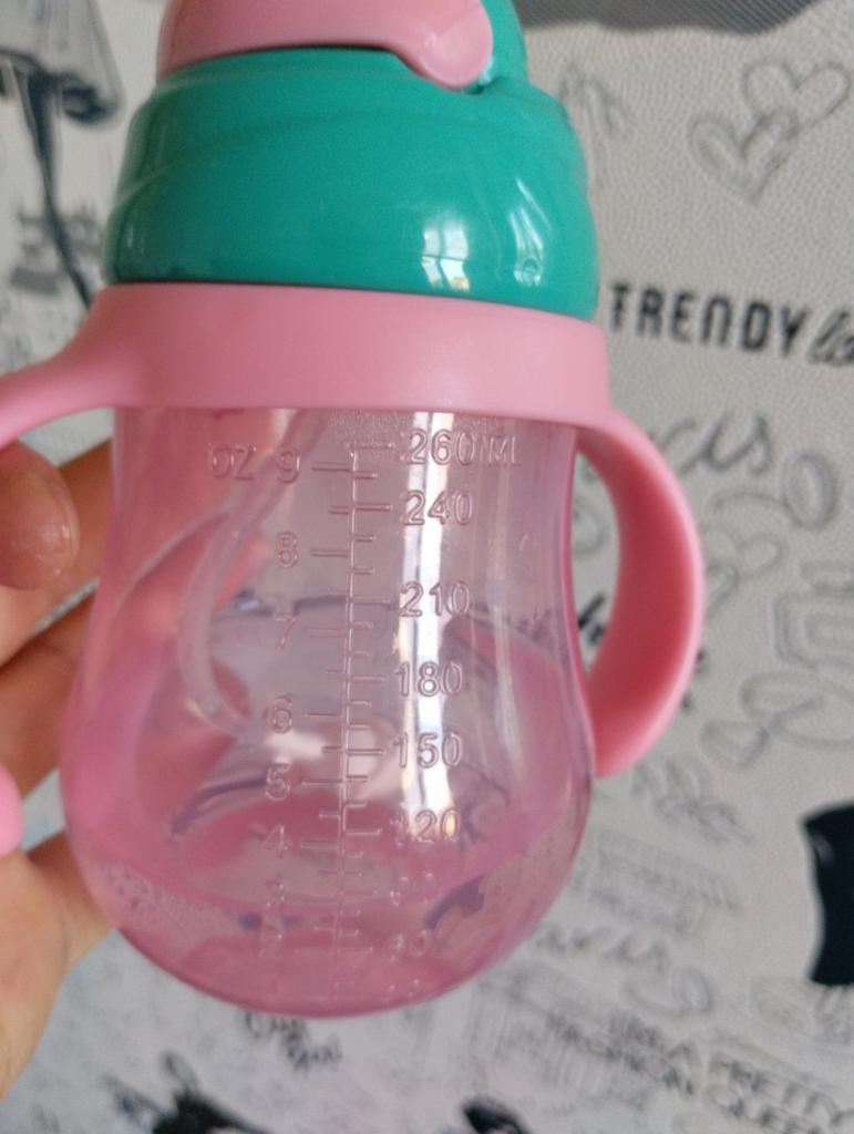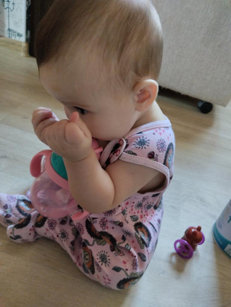 🧋Бутылочка красивая,но очень сложно сосать воду. Даже для меня,взрослого человека приходится прикладывать силы,чтобы попить. Дочери скоро семь месяцев,не может сосать из этой бутылки. К качеству претензий нет. 🖍️Дописываю....сейчас доче семь месяцев, научилась сосать из поильника.Но такое ощущение,что или он иногда протекает,то ли дочь им активно пользуется (трясет) и из трубочки поэтому подтекает вода. 🥤Пластик прочный,дочь постоянно кидает,роняет поильник,но ничего не отломалось) пока!!! Удобно,что на бутылочке выбита градация мл воды,стараюсь сразу много не наливать,иначе дочь его не поднимет,т.к.сам пустой поильник тяжеловат. Трубочка силиконовая,мягкая,сверху крышечка для прикрытия трубочки.