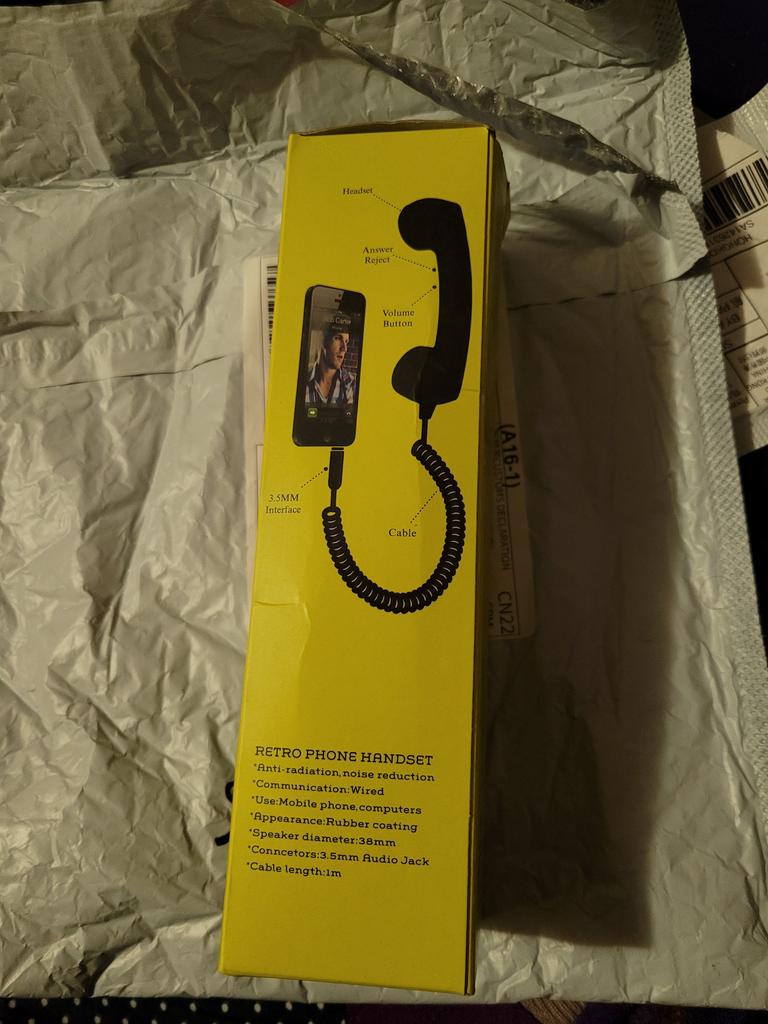 Получила и обалдела. Как в детстве. Все аккуратно упаковано правда коробка мятая. Голубенкая трубочка и, к сожалению, разъём 3,5 мм не подходит к моему тлф. Есть кнопка ответа на входящий и световой индикатор. Попробовала, звук идёт, теперь надо ждать, чтобы кто-то позвонил. Думаю бабушка будет довольна)))) В качестве шуточного подарка очень рекомендую. Дополняю, есть кнопка громкости, но индикатор не светится. За это снимаю одну звезду.