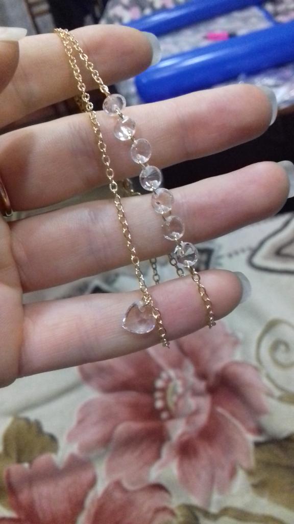 Заказывала три товара - отправили одной посылкой. Красивый. Камешки блестят. Двойной. На одной цепочке один камешек. На другой - ряд. Посмотрим как будет в носке.