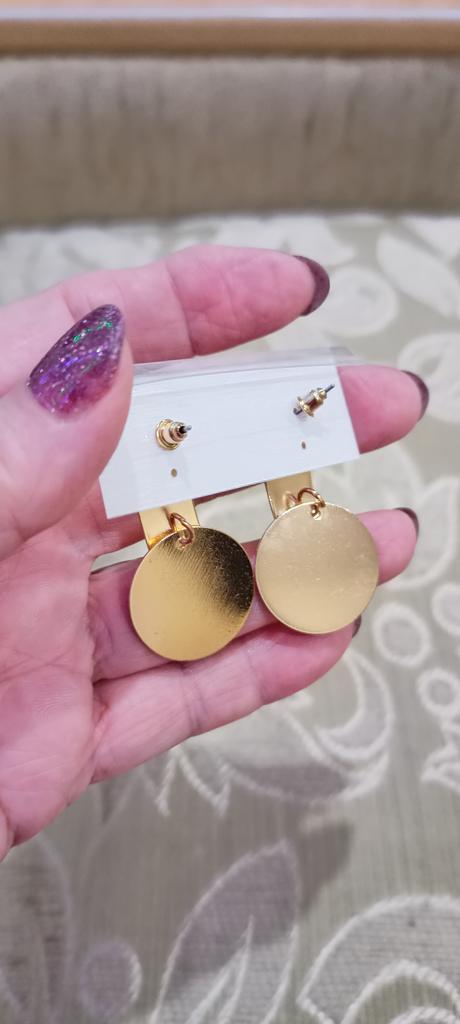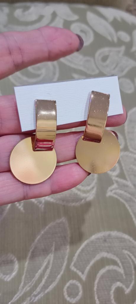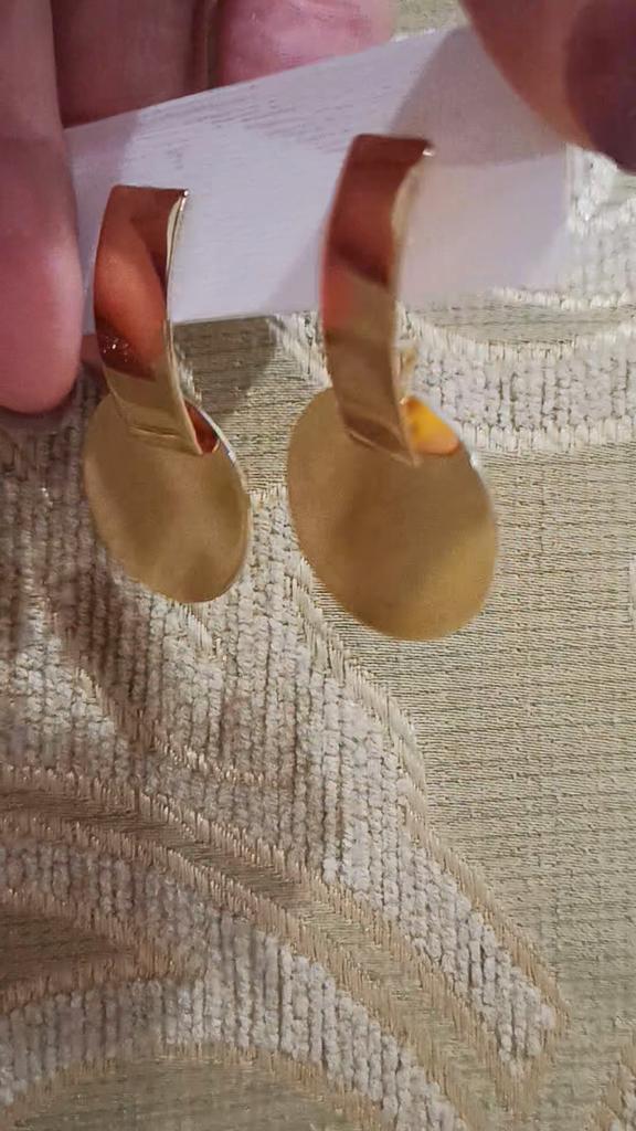 Металлические серёжки в цвете под золото. Смотрятся красиво, не маленькие. Заказала под платье горчичного цвета, а оно оказалось малым. На свету серёжки красиво переливаются, блестят. Застёжка гвоздик.