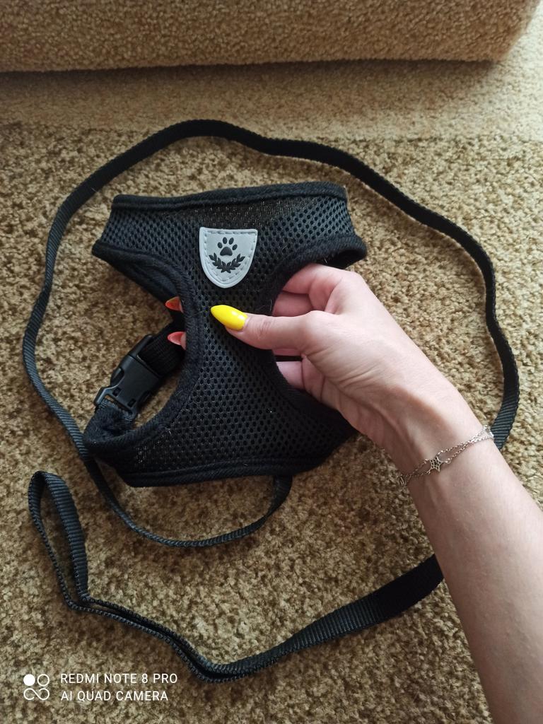 Всем Солнечного денечка!))🥰🤗🌞 Получила я значит свой заказик на Джум) Итак рассмотрим по порядку) Плюсы: 1. Время доставки и отслеживание. Ехала посылка 36 дней до Украины (Днепр). Отслеживалась от момента отправки до момента получения. 2. Цвет, материл и плотность. Цвет заказала черный, выдержал стирку, не полинял, не сжался, цвет остался прежним. Материал мягкий, для кота комфортный, ничего нигде ему не пережимало. 3 Размер. Брала М. Так как у меня трое котов и все разных размеров, то хотелось подобрать универсальный. Но на кошку (3 кг) оказался велик, но это и не проблема, для нее есть другой поводок. Для котов весом 4,5 и 6 кг оказался как раз нормальным, просто нужно регулировать ремешок на жилете. Но думаю 6-6,5 кг - это максимум, если вес будет уже больше, то и заказывать надо на размер больше. Длина шлейки (поводка) 1,5 метра. 4. Про долговечность не скажу, но уже опробовали на прогулке. Выдержала и бег, и прыжки, и лазанье по деревьям. 5. Есть светоотражатель, в темно светится при попадании света фар. Минусы: 1. На фото заявлено, что на спине жилета находится липучка для застёгивания, но по факту там ничего такого нет. Крепится поводок тоже иначе. Это хоть и не является особенно проблемой, но все же немного расстроило. Делая вывод, можно сказать, что за такую цену можно смело брать поводок, не сказать что он долго прослужит, смотря какой частоты выгул, но я уже месяц пользуюсь, пока все нормально)) Всем Удачных покупок!))🥰🤗🎁🎁