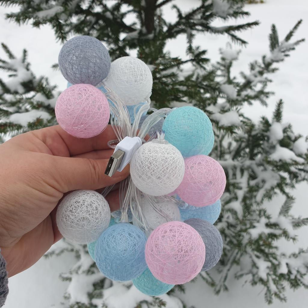 Разноцветная гирлянда для создания уюта ✨ Привет всем, хочу поделиться своей удачной покупкой, которая радует меня по сей день. Прибыла посылочка более чем за месяц. При пересылке ничего не повредилось. Длина гирлянды: 2 м, лампочек 20 шт, все работают. Шарики выполнены из прозрачной прочной пластмассы и обмотаны разноцветными нитками, их объём 11,5 см. Работает гирлянда от usb, я как раз такую и хотела. Выбор цветов огромный, я долго не могла выбрать какую взять, но остановила свой выбор на вот такой нежной, разноцветной. Очень классная гирлянда, она создаёт в доме уют и атмосферу праздника, советую от души. 💕