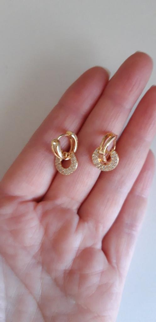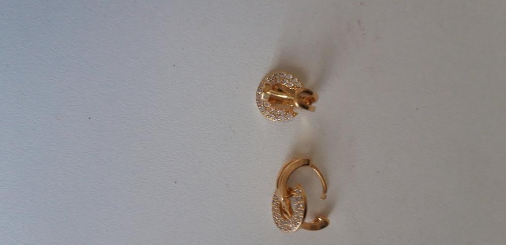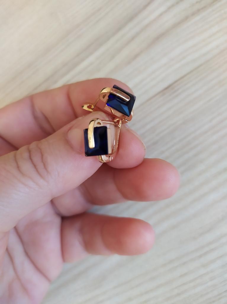 Серьги очень понравились. Небольшие, все камушки на месте, застежка плотная. Но, если дырочка на мочке низко,то смотрятся лучше, у меня высоко,поэтому нижний кругляш с камушками впритык к уху.