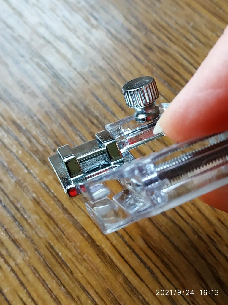 Лапка приехала в пакете с пупырчатой защитой. Все целое, хотя направляющая пластина изготовлена из пластика. В работе пока не пробовала, но по виду должна справляться с тонкими тканями (высота прорези в пластине небольшая). Металлическая часть из хорошего добротного металла без каких либо повреждений, зазубрин и позже дополнить обзор.