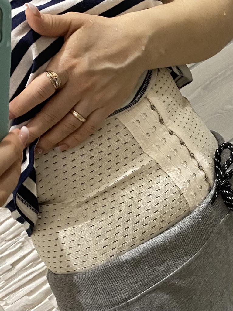 Добрый день! 🙂Пишу СВОИ ощущения после примерки пояса/корсета. Размер подошёл хорошо. 👍🏻На фото видно, что застегнут на последние петли. ☝🏻Как видно по фото, через некоторое время после носки, образовываются заломы. 😔Их очень видно через облегающую одежду. И чем сильнее корсет затянут, тем сильнее получаются заломы. Отсюда вывод: Чтобы их не было видно через одежду, надевайте просторные вещи. А если вы надеваете просторные вещи, то и нафиг не нужен этот пояс 🤷🏼♀️ К качеству материала претензий нет. Приятно к телу. По корсету мягкие пластиковые ребра жёсткости.
