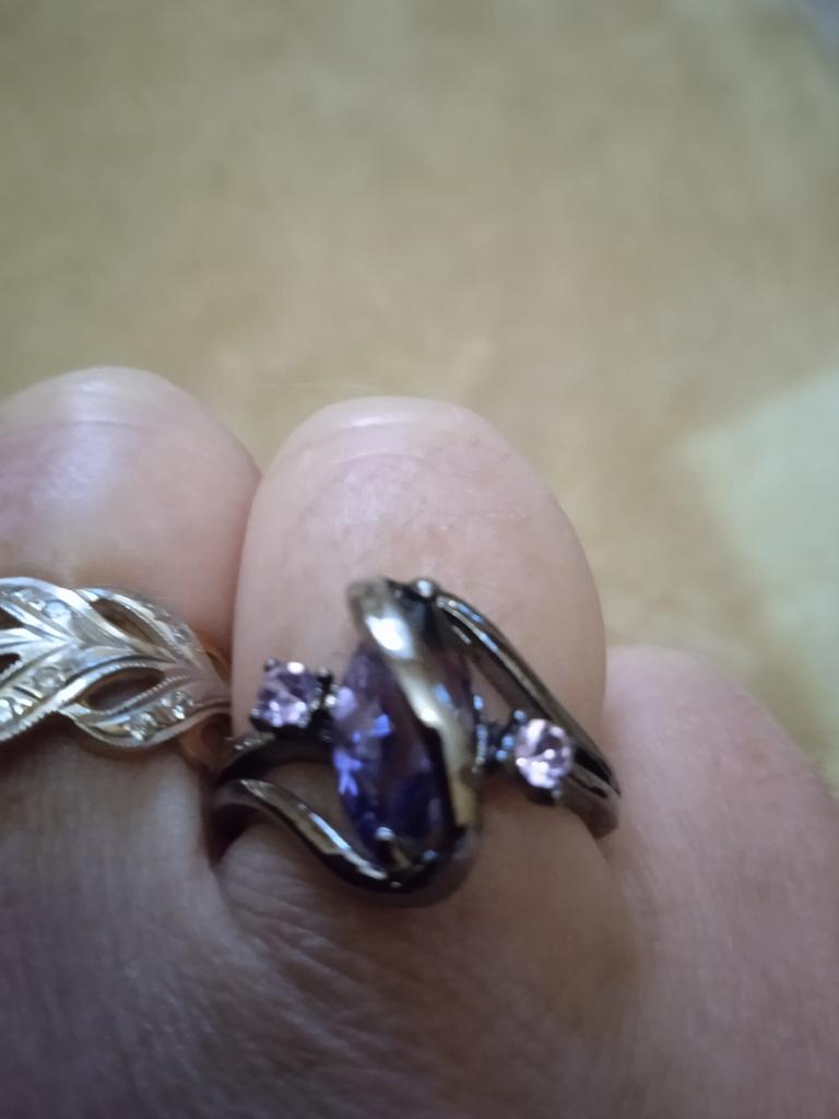 Заказала 18.04. Получила на почте сегодня 29.05. Но пришло кольцо на неделю раньше,просто у меня не было возможности получить. Заказала ,как обычно, 8 номер,но в этот не совсем угадала ..хотя мне нравится и на этом пальце.. Кольцо необычного вида,большой камень фиолетового цвета и рядом два маленьких.. По опыту предыдущих покупок колец с камнями могу дать совет: ВОЗЬМИТЕ ВАТНУЮ ПАЛОЧКУ И УНИВЕРСАЛЬНЫЙ КЛЕЙ МОМЕНТ..с внутренней стороны кольца по ободку аккуратно,чтобы не испортить цвет камня,нанесите клей и дайте высохнуть. Почему-то камни выпадают. А в общем, спасибо ДЖУМу.. Прошла неделя..дополняю.. Всё нормально..
