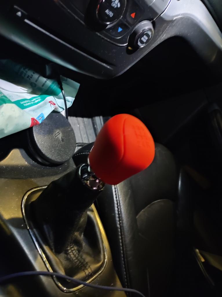 Весьма полезная штука от затирания головы рычага передач. Для тез, кто носит кольца, браслеты, часы на правой руке - незаменимая вещь. Рекомендую. У меня салон красно-черный - смотрится отлично
