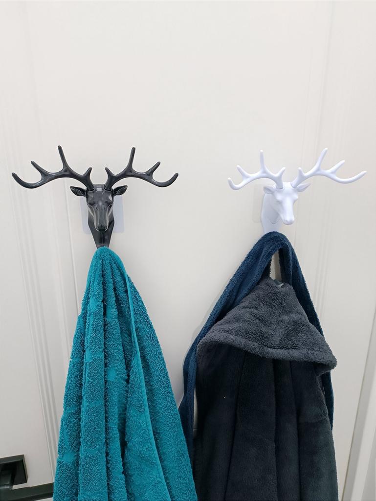 😍 УДОБНЫЙ, КРАСИВЫЙ, КАЧЕСТВЕННЫЙ КРЮЧОК ДЛЯ САНУЗЛА, ОРИГИНАЛЬНОГО ДИЗАЙНА 💯👍 🙋♂ Снова заказал вот такой крючок в ванную. Два года назад уже брал, причём несколько раз - себе и родным на подарки, только белого цвета. За два с лишним года один из двух крючков отслужил своё. Вернее сказать, сам олень целый и невредимый, и мог бы ещё не один год служить вешалкой для полотенец и халатов. Но! Наклейка на дверь неожиданно порвалась - возможно, из-за перегруза. А отдельно наклейки не продаются, к сожалению. 💁♂️ И я решил вместо белых оленей заказать двух чёрных. Тут и ложка дёгтя подоспела - продавец вместо двух крючков почему-то прислал только один. Спасибо службе поддержки - быстро ответили, вникли в ситуацию, и вернули 50% стоимости заказа. То есть как раз деньги за одного оленя. Я решил, пусть тогда висит один белый олень, и один чёрный - это даже интереснее смотрится, учитывая дизайн интерьера ванной комнаты. В общем, по итогу всё хорошо! 😂 Если и должен быть кто-то в доме с рогами, то это они - роскошные олени, которые служат одновременно и украшением санузла, и практичным дополнением. На мой взгляд, олень просто супер! Доставка быстрая, за 25 дней пришёл мой заказ. Слегка помятая, но симпатичная картонная коробка. Вся информация на китайском языке, но всё и так понятно. Олень пришёл в разобранном виде. Все детали из пластика, приличного вида и качества). 🦌 Собирается олень очень просто, монтируется тоже. Рога вставляются в специальные пазы, в которых они потом держатся достаточно плотно. Клеится крючок на липкую наклейку, которая входит в комплектацию. Повесил крючок на дверь в ванной, держится он хорошо. Важно: что-то совсем тяжёлое вешать нежелательно, крючок большой вес не выдержит - проверено на собственном опыте. Он просто для этого не предназначен. 🤷♂️ Так что тёплые халаты и по три больших полотенца на каждый крючок Вы точно не сможете повесить. Не стоит этого делать. А вот небольшие полотенца, халат, ну или ключи, зонты и прочее - самое то. В общем, крючок классный, рекомендую всем желающим!