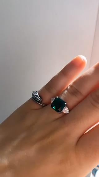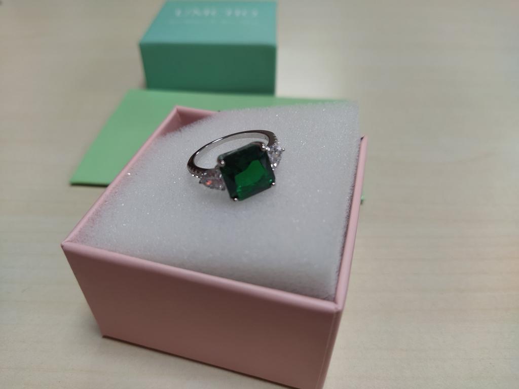 Кольцо очень красивое, с изумрудом квадратным,моя племянница мечтала,я ей заказала ещё такие же серьги.Спасибо Каспи банку.