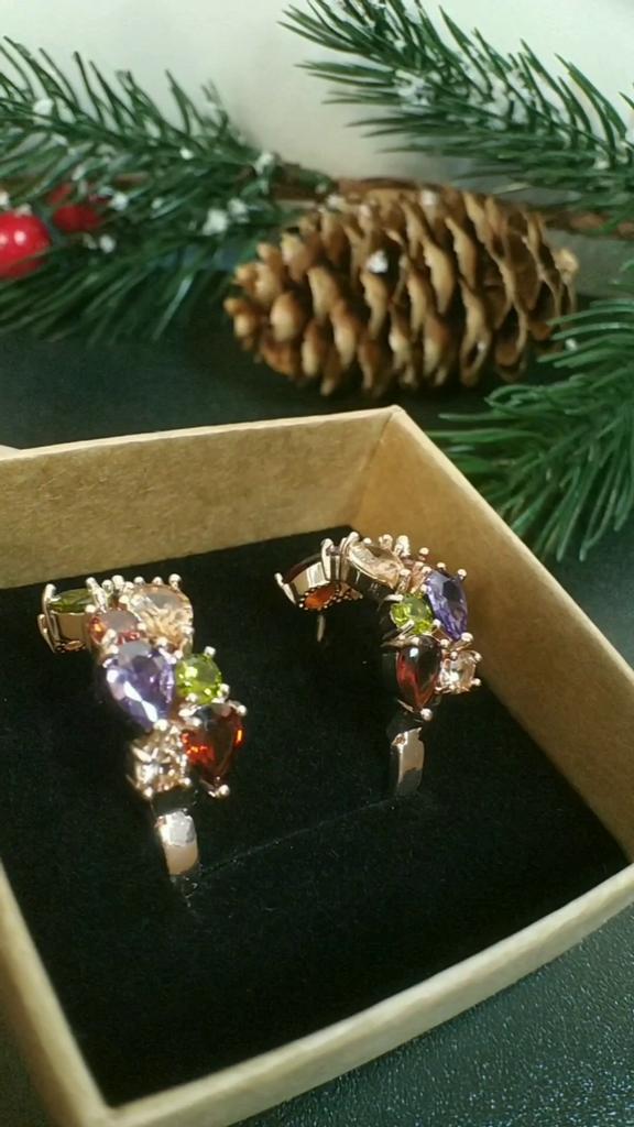 Яркие серьги с разноцветными камнями. ✳️Все камни на месте. За счет граней сережки хорошо сверкают на солнечном свете. ✳️Застежки крепкие и надежные. Судя по отзывам многих смущает их размер. Они действительно большеваты и увесисты. Но мое ухо не оттягивают. За весь день ношения сережек аллергии не вызвало. Указывают, что со временем темнеет дужка, пока у меня этого не произошло. Упакованы были просто в прозрачный пакетик. К покупке рекомендую! ‼️При покупке предлагаю воспользоваться промокодом 0T56ZFMNBB на 5% скидку. Промокод действует для всех пользователей на любые товары. Действие промокода ограничено.‼️