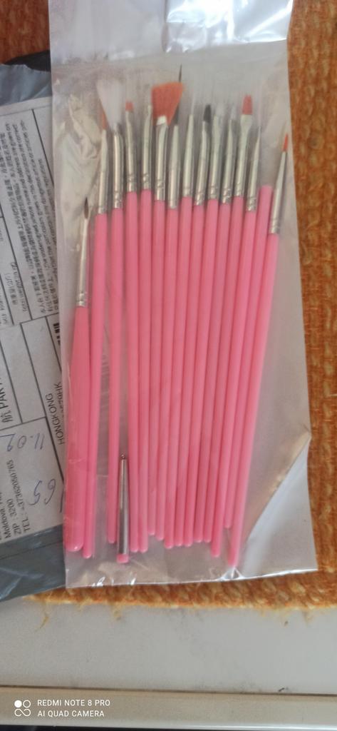 В посылке несколько заказов, что очень удобно, комфортно. Кисточки для дизайна в маникюре. В наборе 15 кистей различной формы, что очень практично и удобно при оформлении дизайна ноготков. Рекомендую.